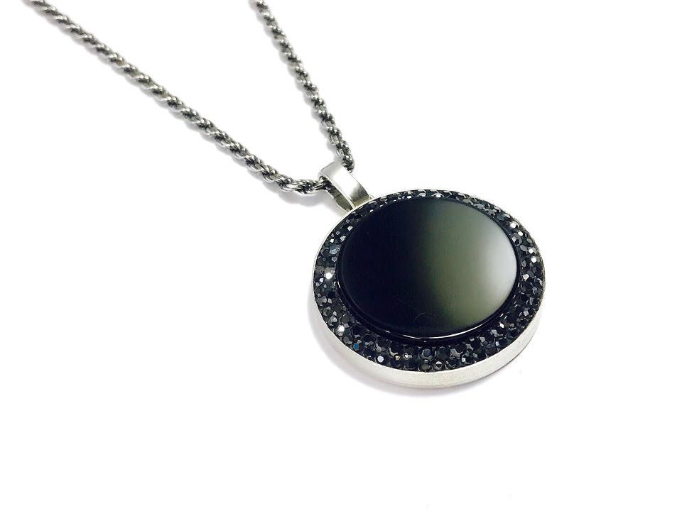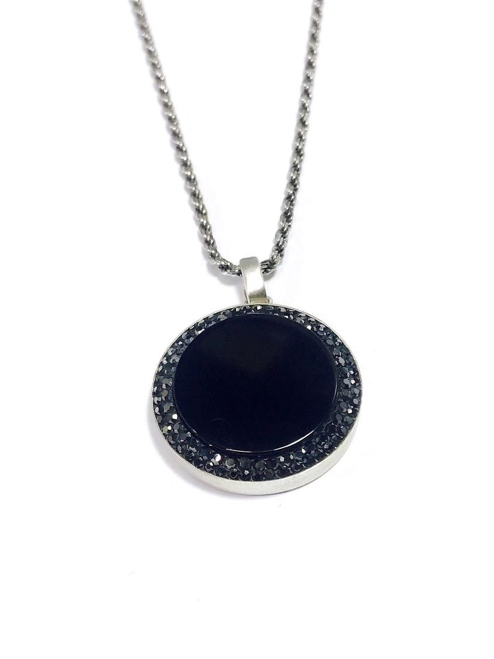 שרשרת כסף 925 מושחרת באורך 60 סמ עם תליון כסף 925 משובץ באוניקס שחור טבעי ומסביב 2 שורות קריסטלים סברובסקי המוטייט, אורך התליון 3.5 סמ. משלוח 15
