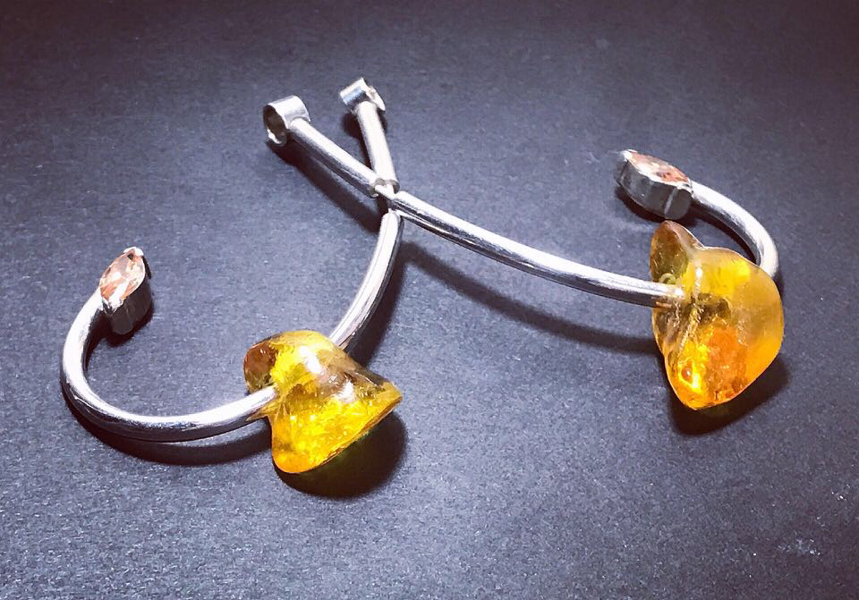 עגילים מיוחדים עם ענבר טבעי - כסף 925