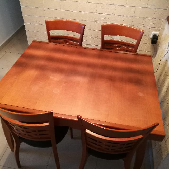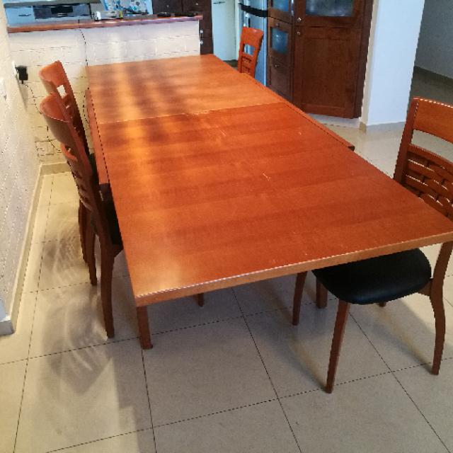 פינת אוכל עם 8 כסאות במחיר משתלם 3,000 ש״ח , שולחן בסגנון איטלקי שמור כמו חדש, סגור 1.80 מטר ופתוח 2.20 מטר, מפרדס חנה.