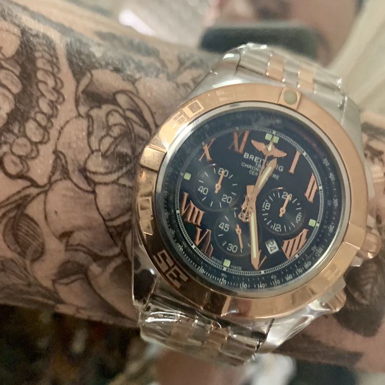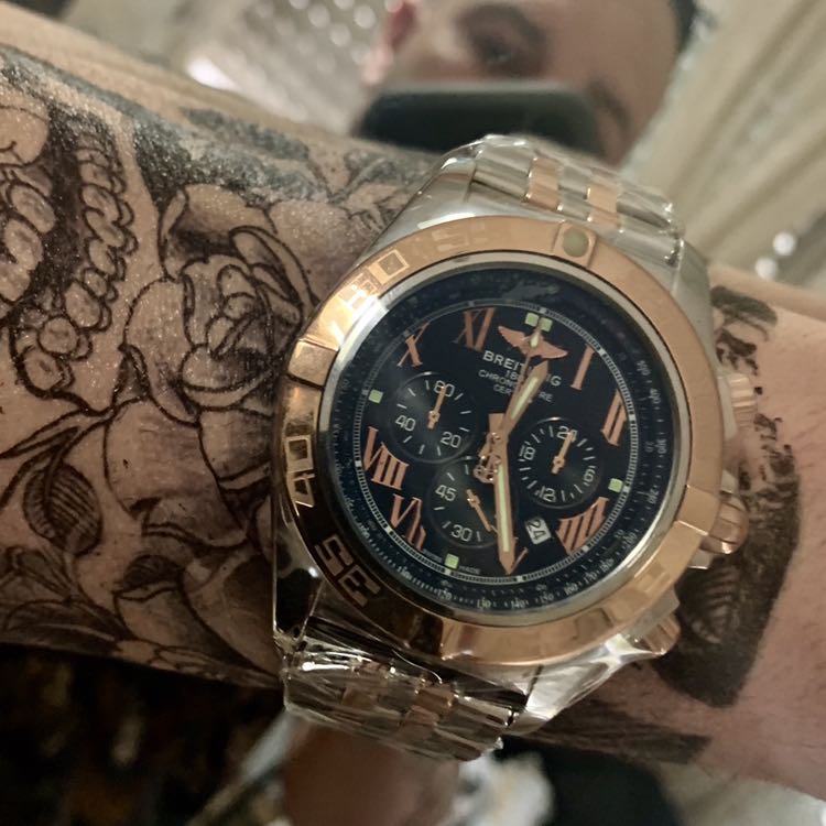 ברייטלינג כרונונומט 43 onyx dial / roman numbers Rare watch. Face black rose gold , band silver rose gold water resestent THE REAL DEAL