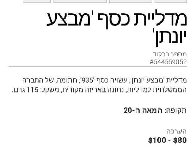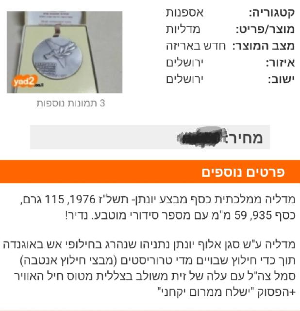 מדליית מבצע יהונתן 115 גרם כסף אמיתי שנת 76