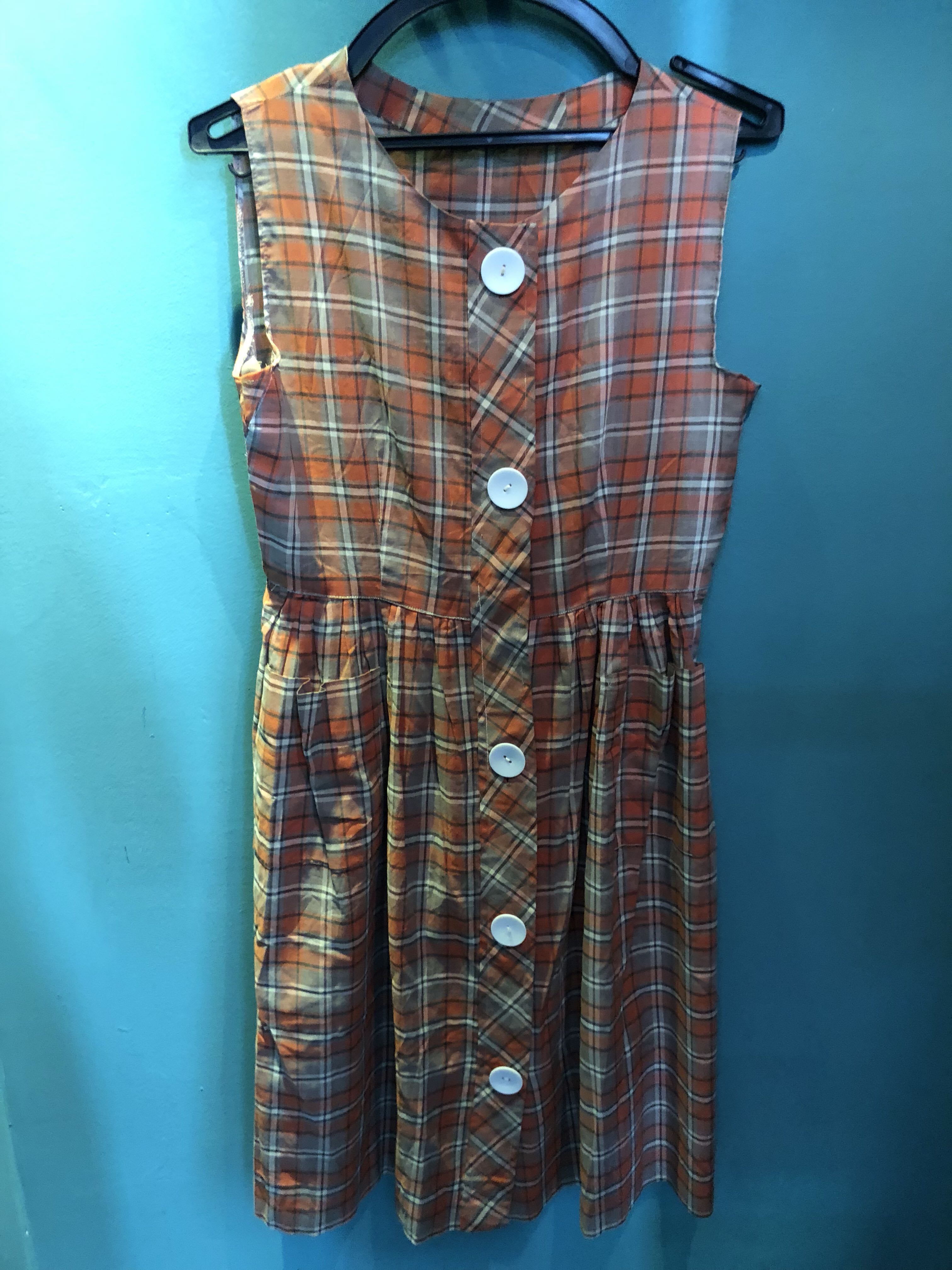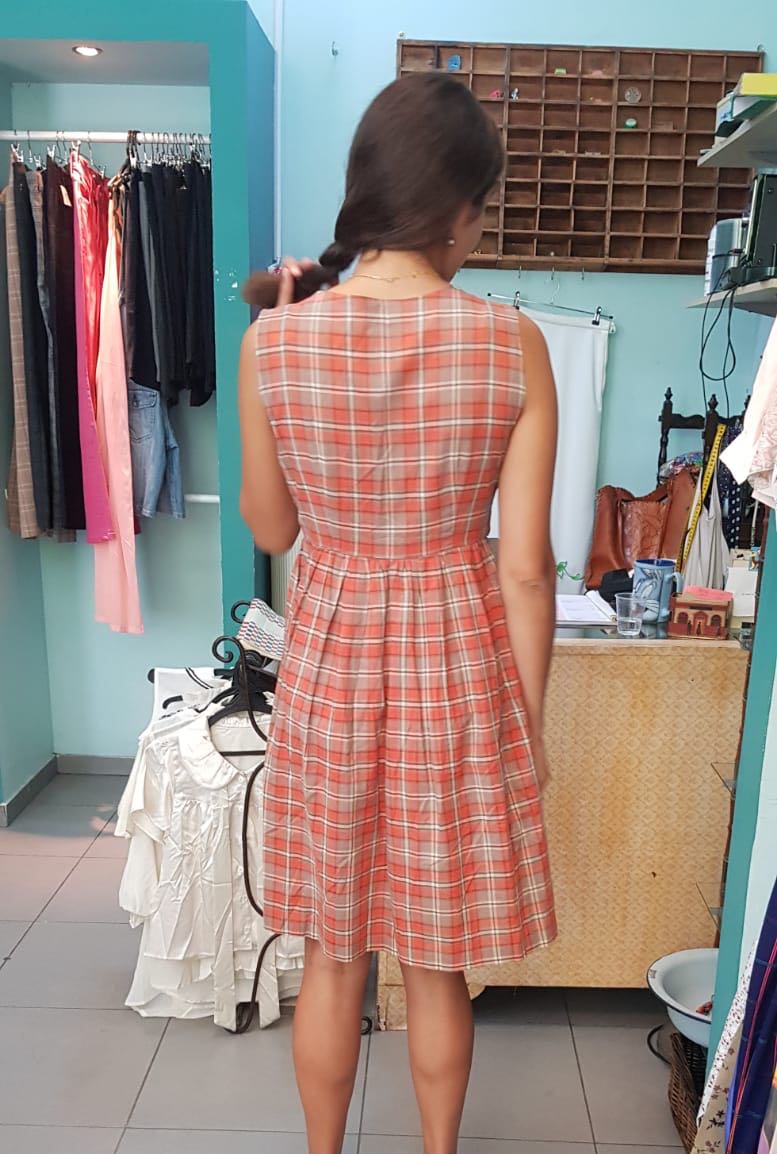 שמלה משובצת מתאימה לטווח גדול של מידות ואפשר לשחק עם זה שמלה נינוחה קלילה ומקסימה מיובאת מיפן