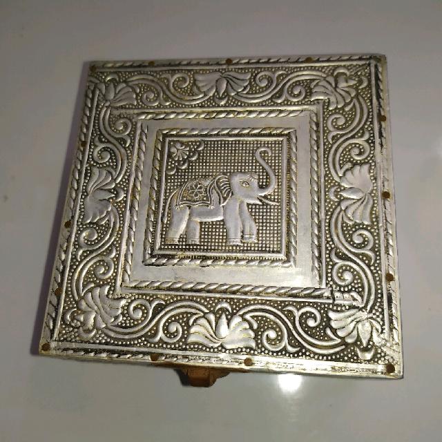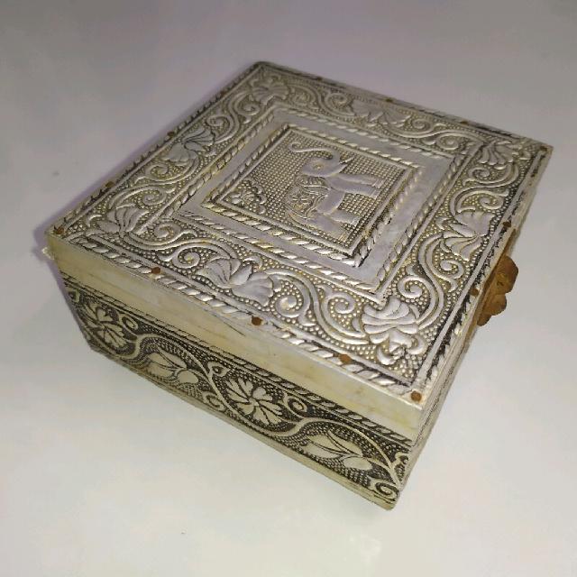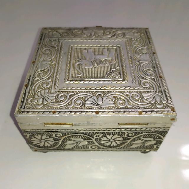 קופסת תכשיטים עתיקה עטופה מתכת במצב מצויין