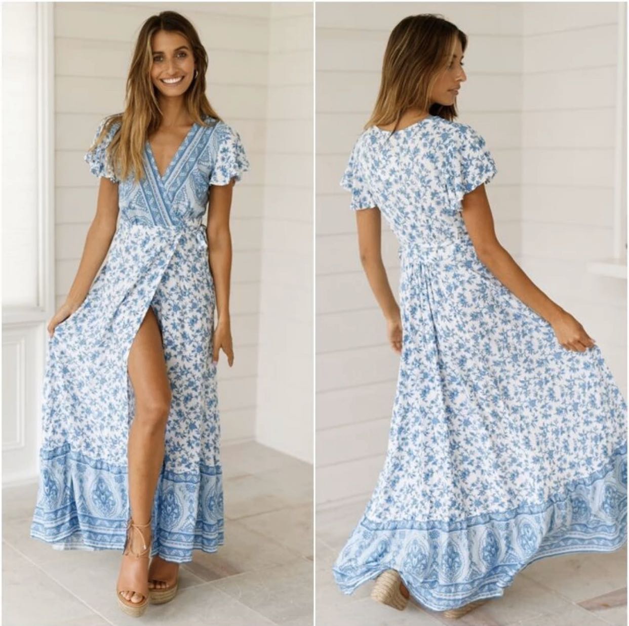 שמלות בוהו פרחוניות שרוול קצר💃🏻🧚🏼♀️🦋🙏🏻