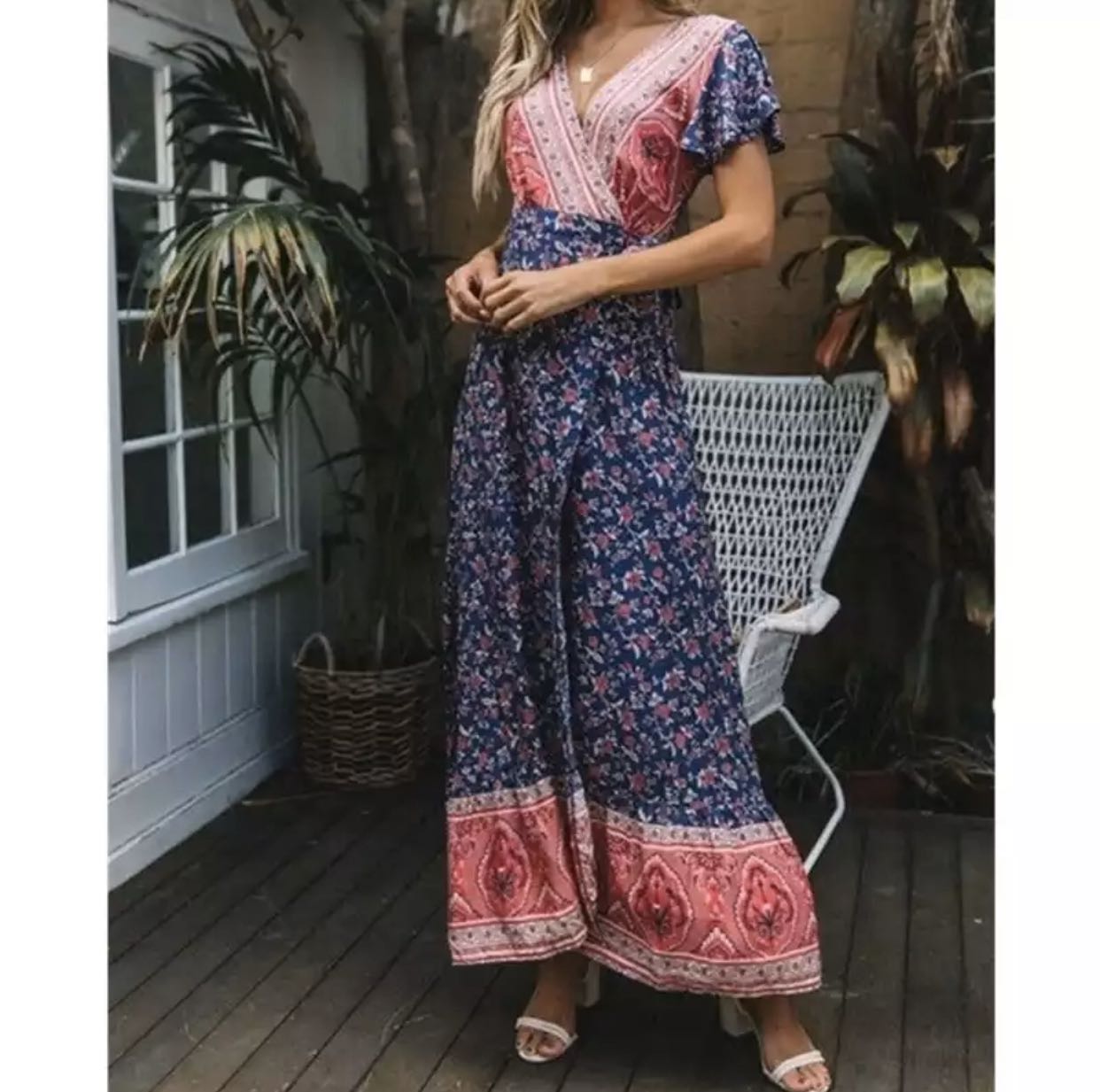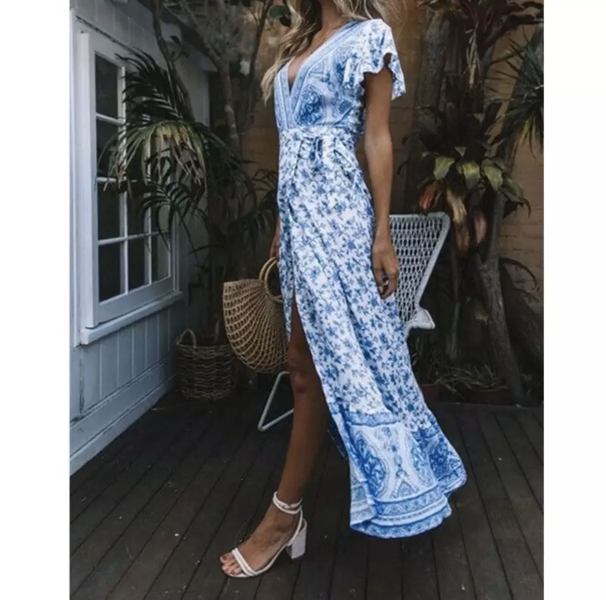 שמלת מקסי בוהו וי עמוק חגיגיות🌺🐚