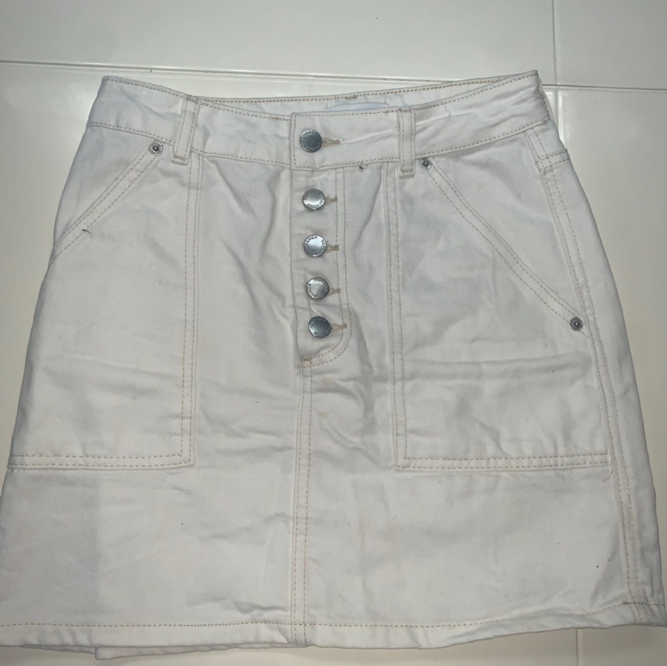חצאית לבנה מושלמת עם סגירת כפתורים מהמותג TopShop! יושבת פצצה על הגוף ומחטבת! היא מידה 36 ותתאים גם למידה 34. נמכרת עקב מידה לא טובה אך נלבשה רק פעם אחת.