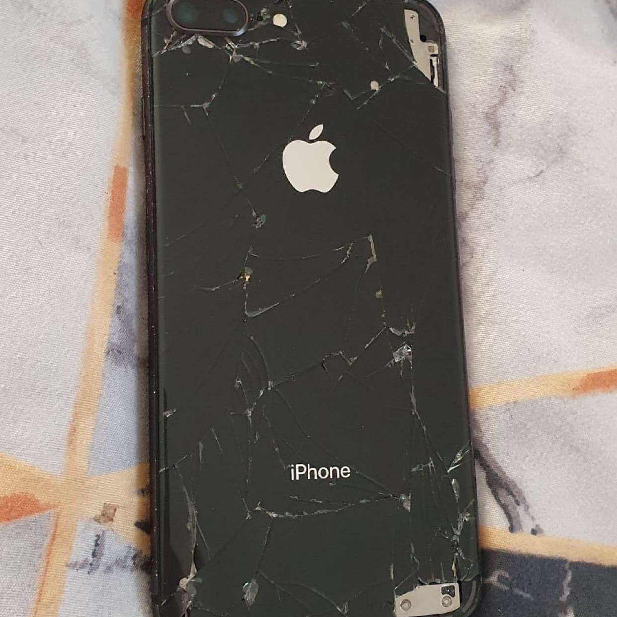 אייפון 8+ עובד מצויין הכול עובד מצלמה רמקולים מגע !!64gb מגיע עם קופסא ומטען המאחורה שבור אך יעלה רק 200 לתקן כמעט בכל חנות.