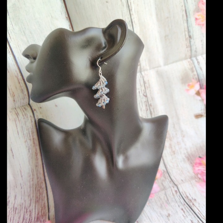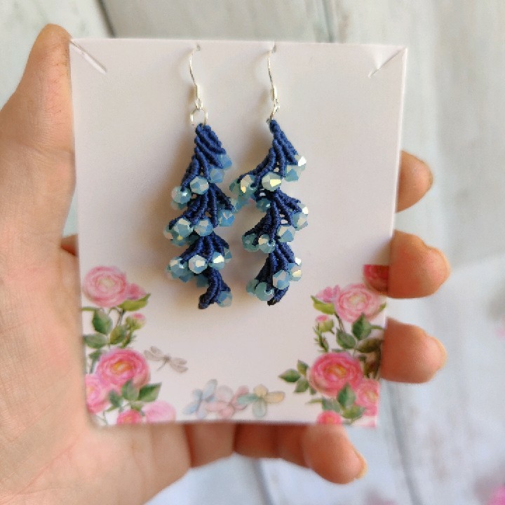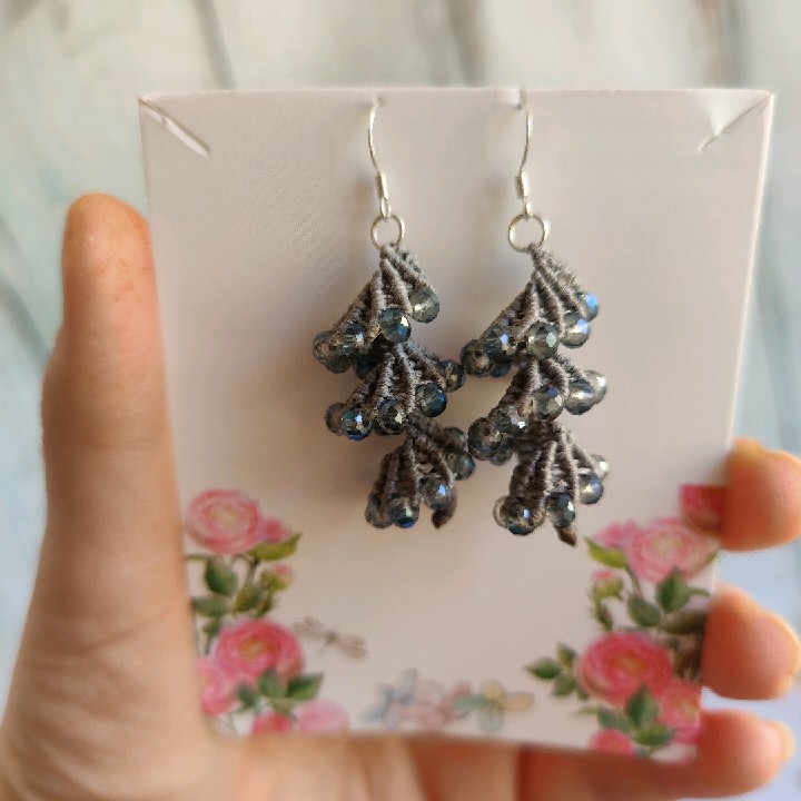 עגילים מקרמה ספירלות עם חרוזים צ׳כים ,קיימים בשני צבעים : אפור כחול. כל זוג 60 ₪ משלוח חינם!