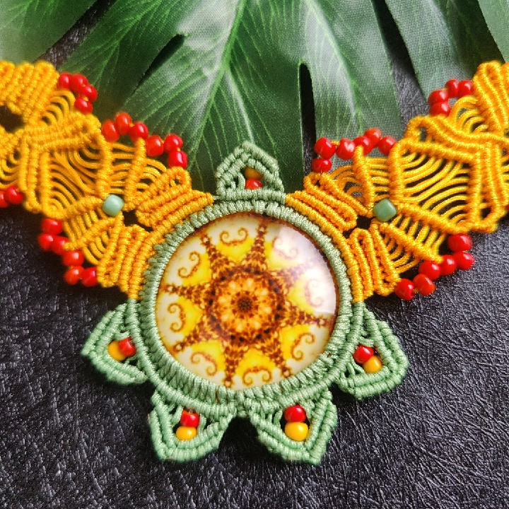 סט תכשיטי מקרמה עם קבושון זכוכית