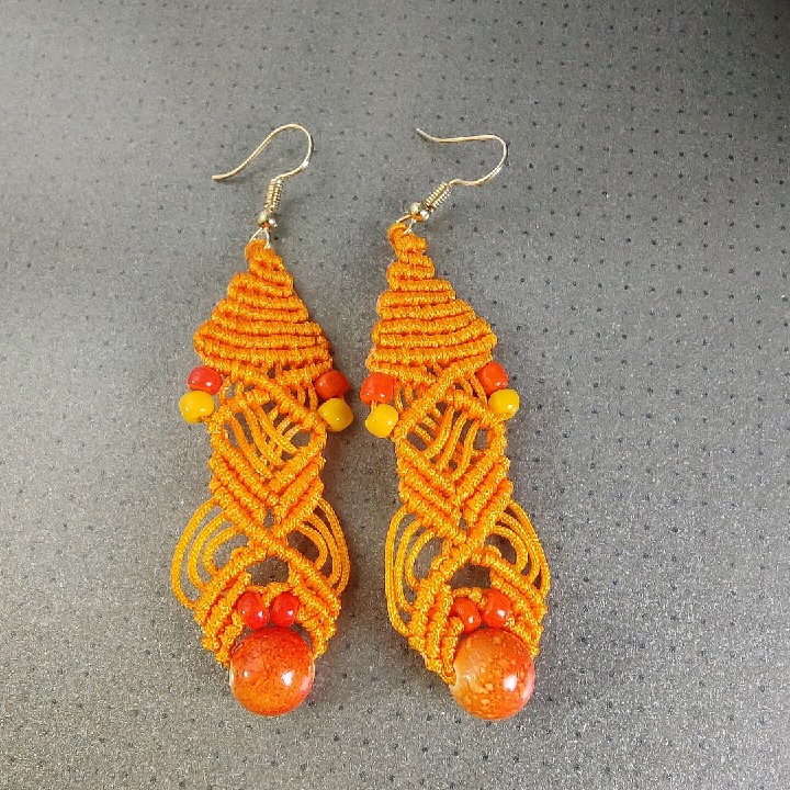 סט תכשיטי מקרמה עם קבושון זכוכית וחרוזי פלסטיק.