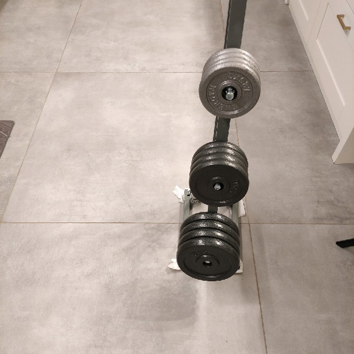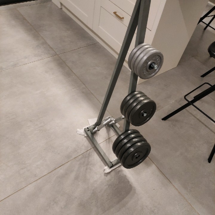 4 משקולות של 5 4 משקולות של 2.5 4 משקולות של 1.25 שני מוטות יד עם סוגרים 2.5 קילו כל אחד
