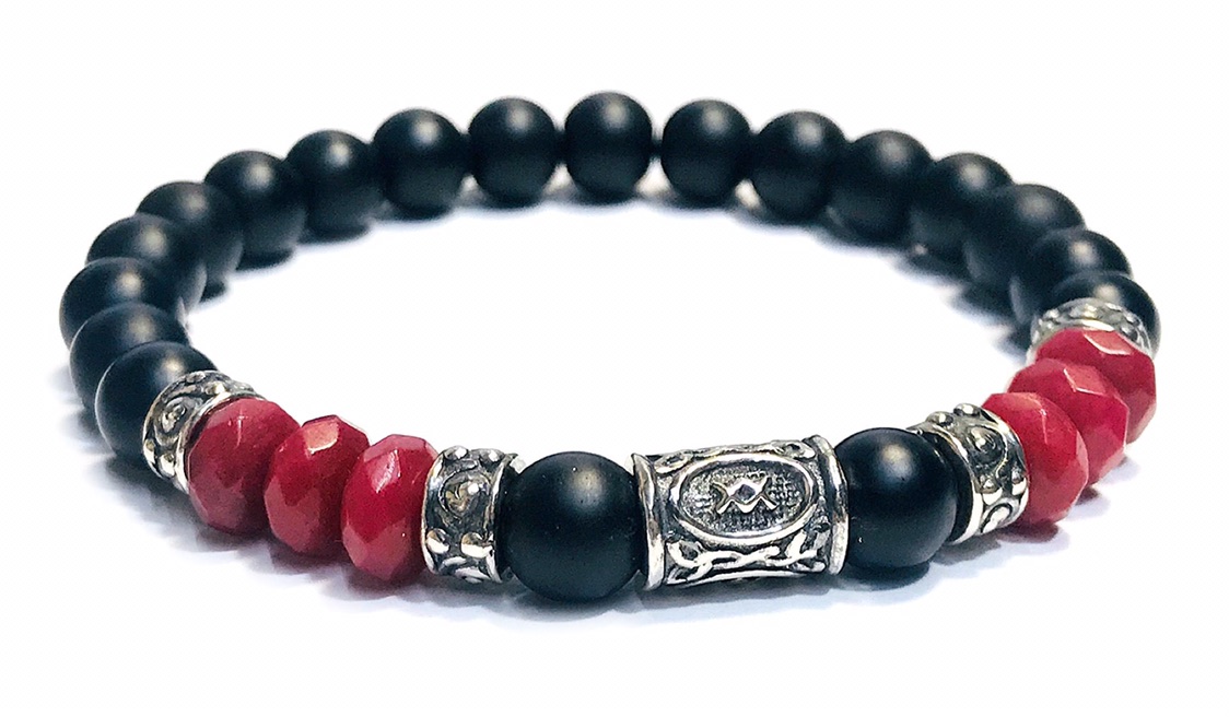 Inguz - ruby and onyx silver 925 bracelet for men