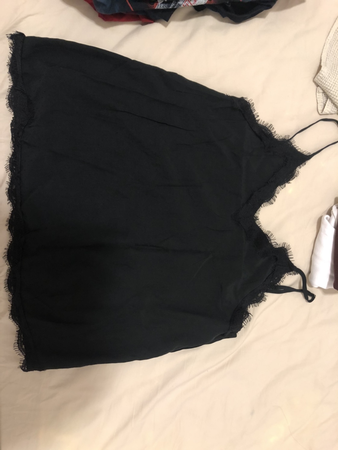 גופייה שחורה עם תחרה בסיומות, מידה m אך תתאים למגוון מידות (אני מידה xs-s) ותהיה יותר אוברסייז או יותר צמודה, גופיות מתכווננות, לא נלבשה אף פעם!
