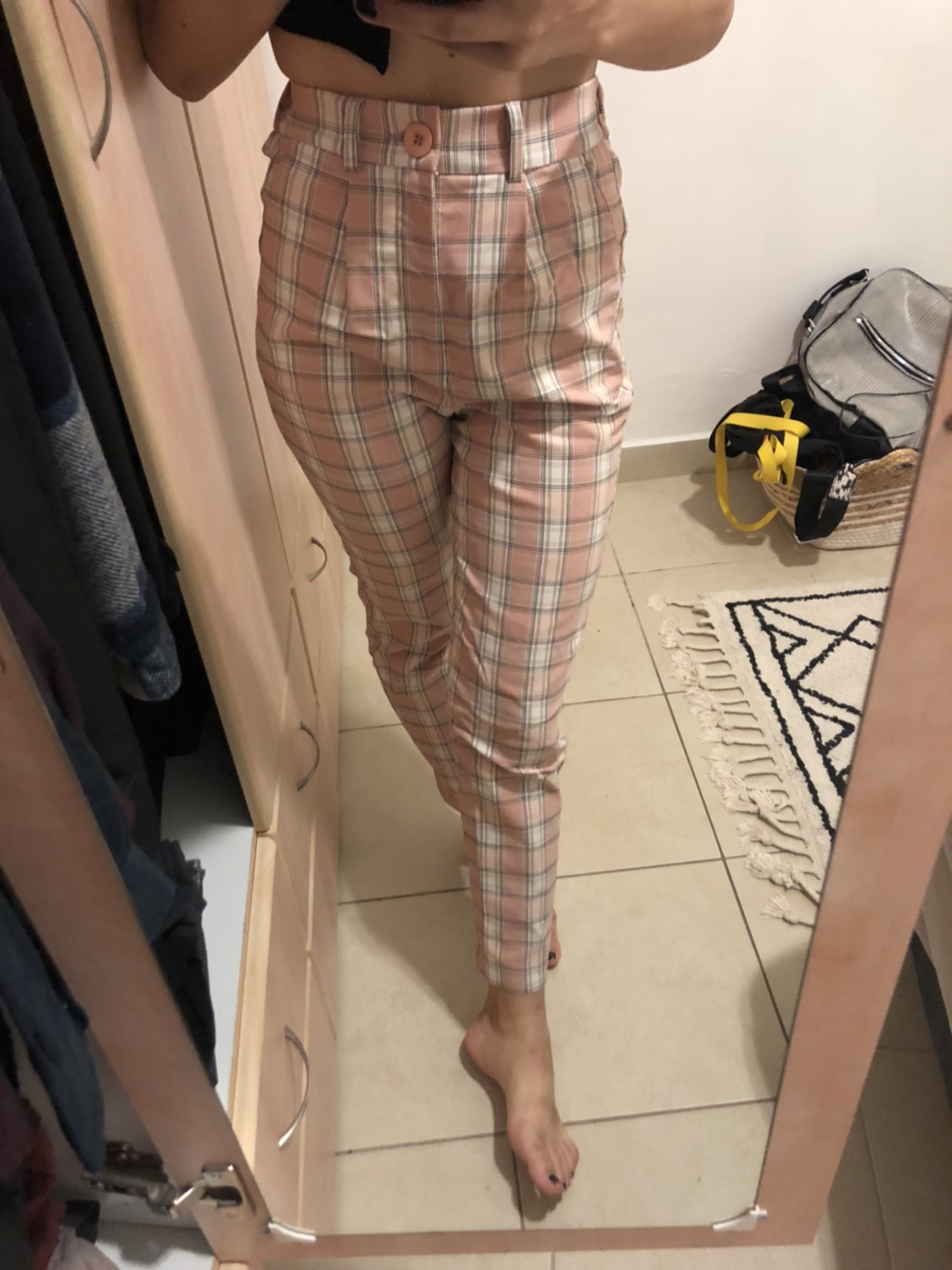 מכנס משבצות ורוד מהמם, עם גומי מאחורה, מידה 36 אך יתאים ל34-38, נלבש פעם אחת בלבד