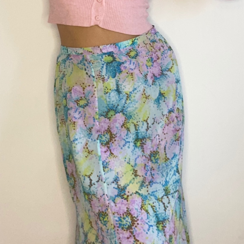 חצאית וינטג׳ פרחונית מהממת בצבעי פסטל וחולצת שרוולים ארוכה ורודה