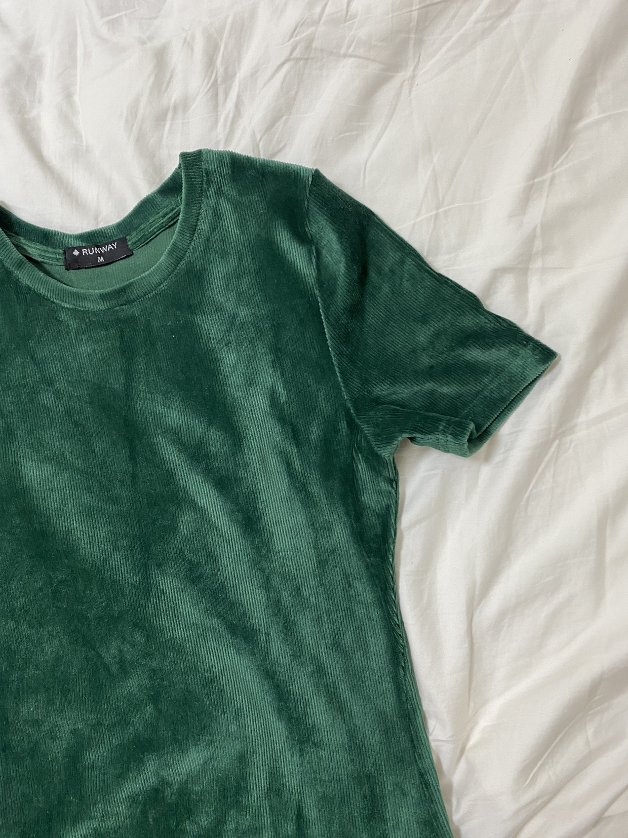 שמלת מידי (עד הברכיים בערך) מבד קטיפה בצבע ירוק מושלם מתאימה למידות S-M