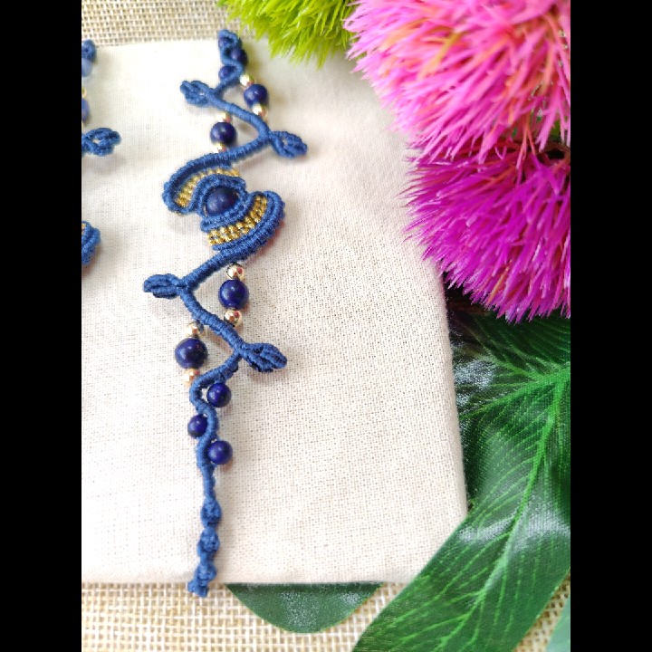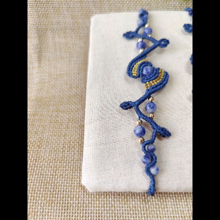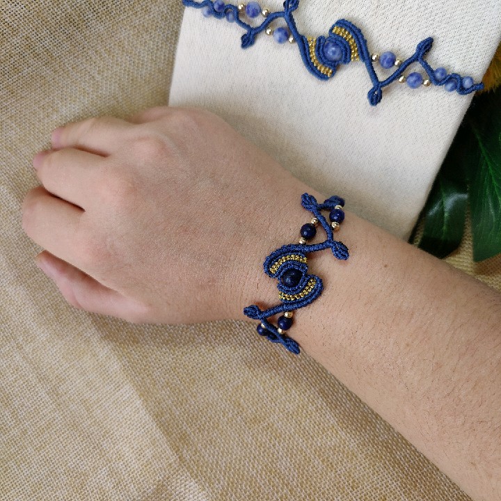 צמידי מקרמה עם אבנים טבעים סודליט ולפיס לזולי.