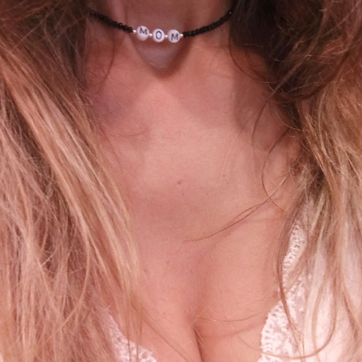 שרשרת קריסטלים בשילוב אותיות צדף MOM. עם סוגר מכסף
