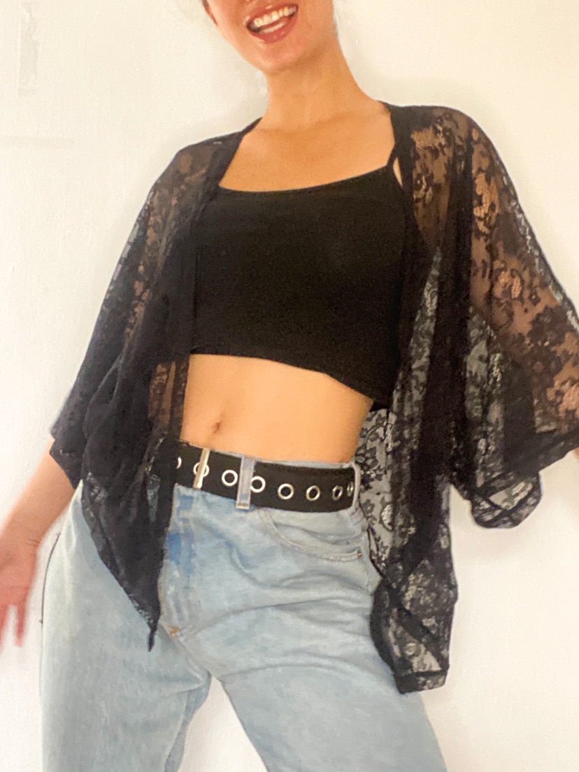 עליונית תחרה שחורה ופרחונית