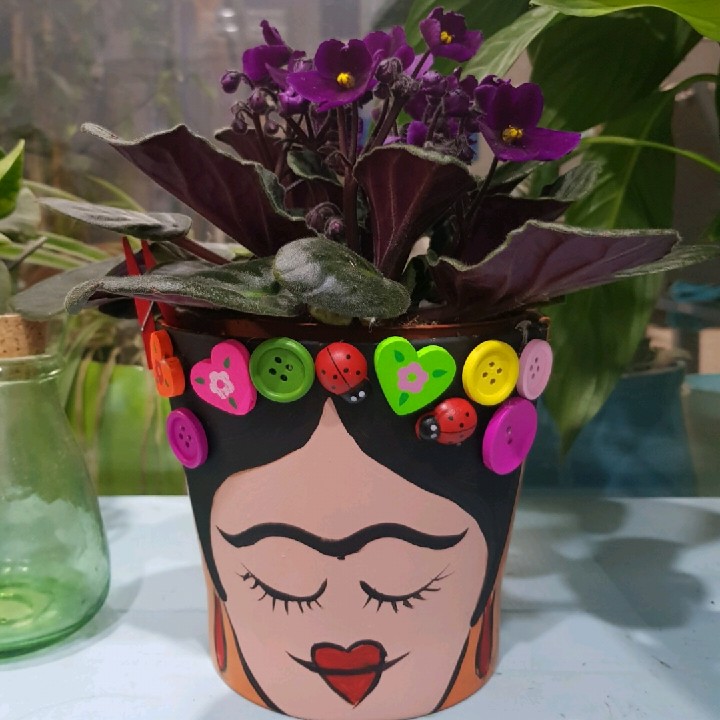 עציץ עם ציור של פרידה קאלו בעבודת יד🥰