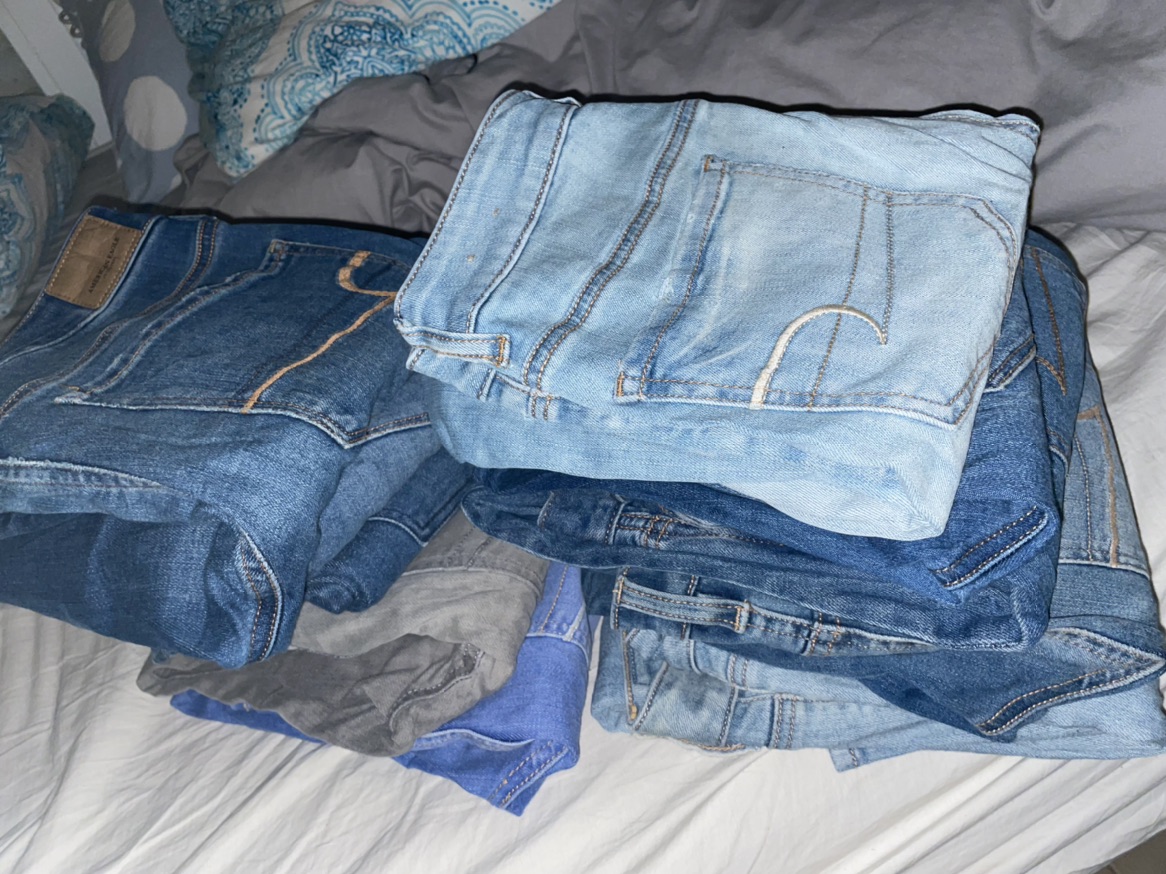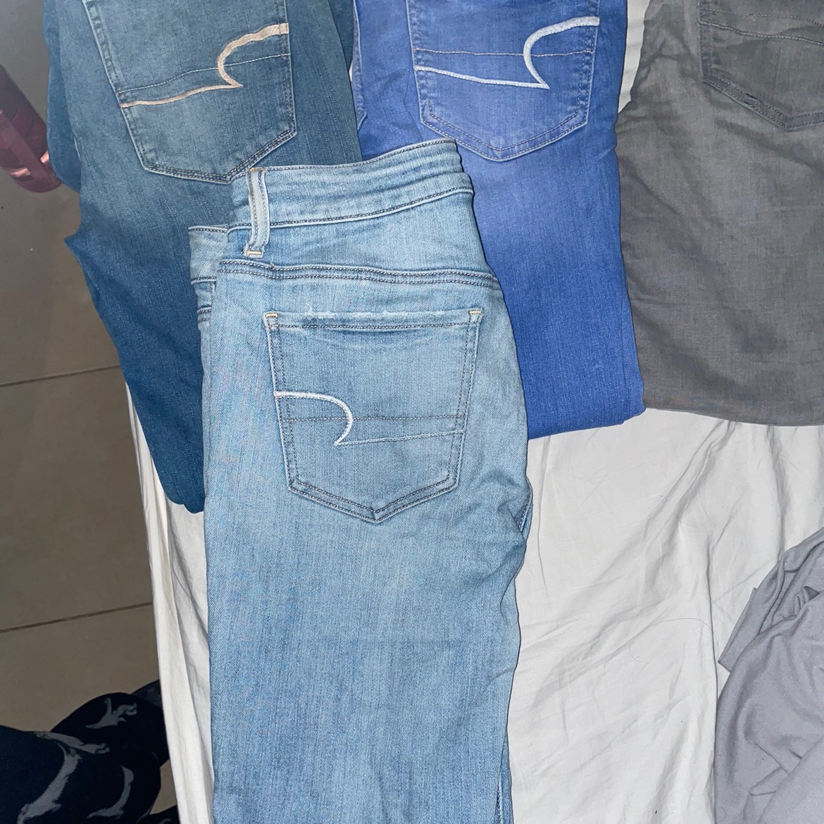 עשרה ג’ינסים של אמריקן איגל!!! ללא קרעים, כולם סקיני גינס חוץ מאחד שהוא בגזרת מום גינס. כולם גבוהים חוץ מאחד נמוך. רוב הגינסים בצבע כחול כהה ויש גם כחול בהיר קצת. כל גינס עלה לפחות 200₪. אמריקן איגל אחלה של ג’ינסים שבעולם זה הקבועים שלי לצערי עליתי מידה ולכן לא משתמשת בהם יותר(: מוכרת את כל העשר ג’ינסים ב750₪ שזה מחיר של 3-4 ג’ינסים חדשים מהחנות. 10! במצב מעולה, לא נלבשו הרבה, נוחים בטירוף ויושבים יפה על הגוף אז אם את מידה 6 ואוהבת ג’ינסים של אמריקן זה בשבילך