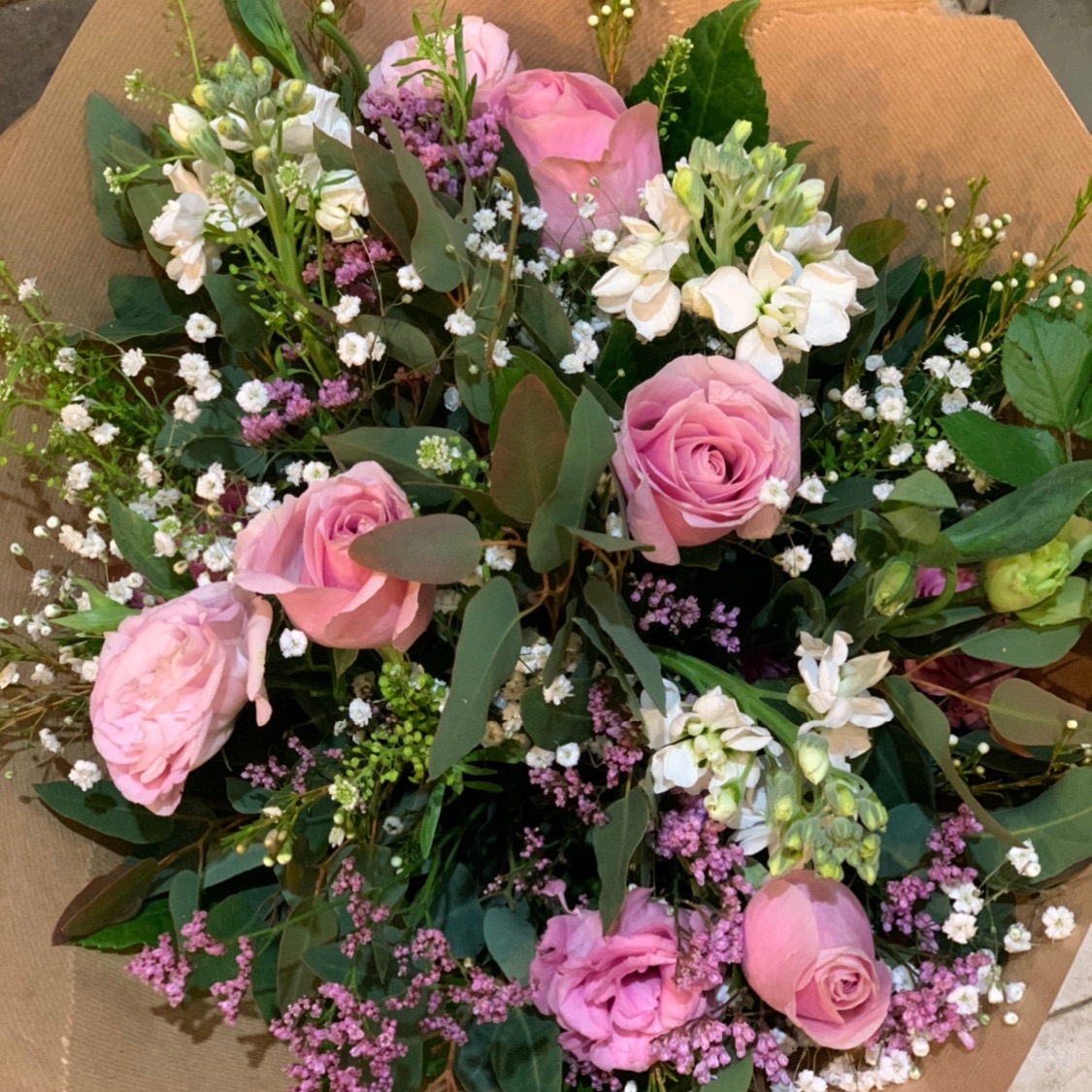 זר פרחים עם ורדים וגיבסנית ווירק מיוחד וכולל משלוח בת-א להזמנה אצל אריאלה 0507332048
