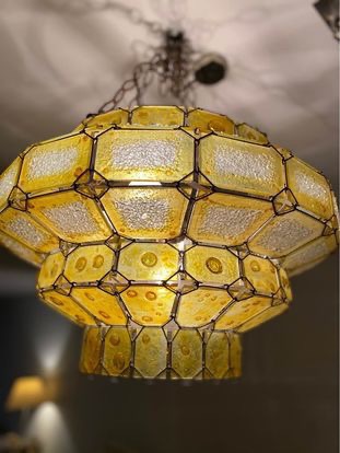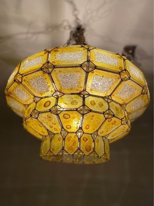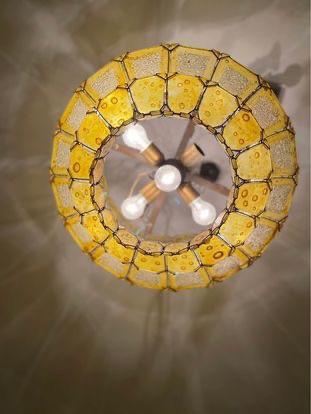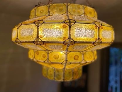 נברשת עתיקה, עבודת יד מיוחדת (לקח 4 ימים של 2 פועלי ייצור). מורכבת משתי שכבות של זכוכית שטוחה עם פיגמנטים באמצע (פיוזינג). יוצרה בזמנו ע"י מפעל ישראלי סופר איכותי בשם "לנוי" שנרכש ע"י משקיע אמריקאי והועבר לארה"ב. נברשת חדשה כזו נמכרת בארה"ב בעלות של כ- 4000$.
