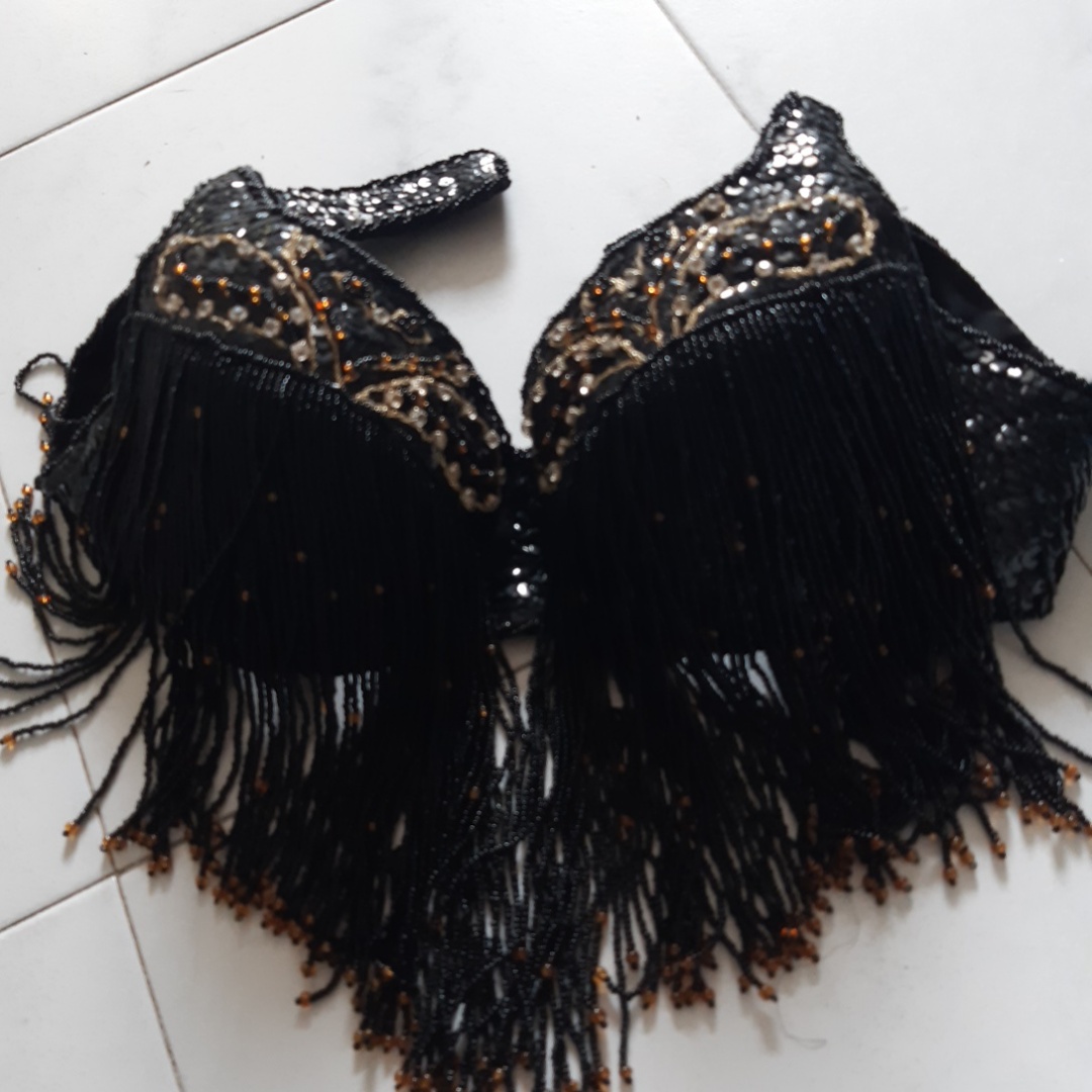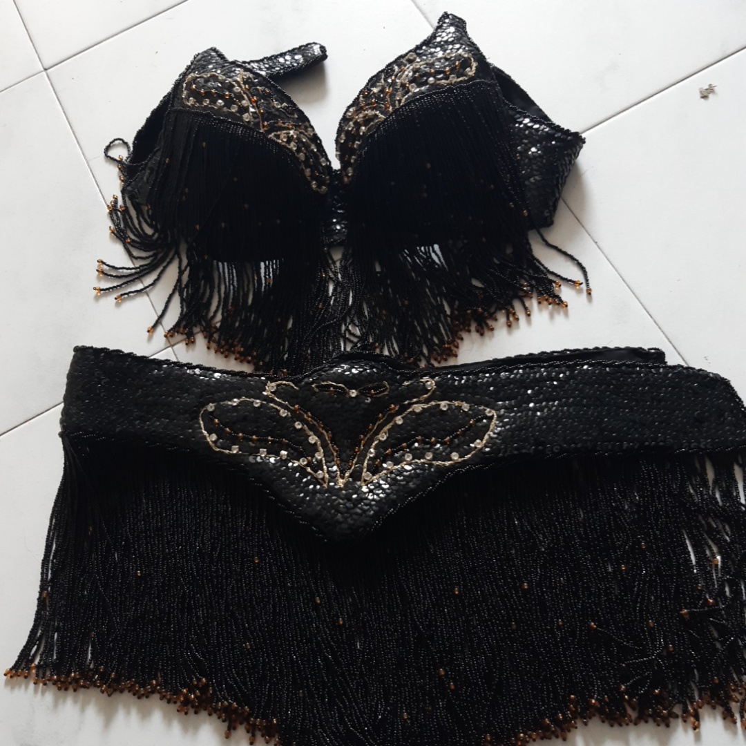תלבושת ריקודי בטן עבודת יד שחור וזהב