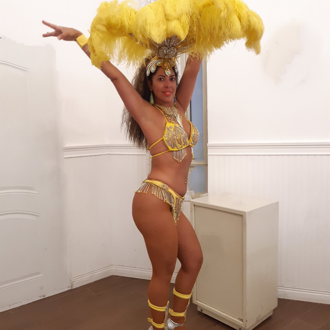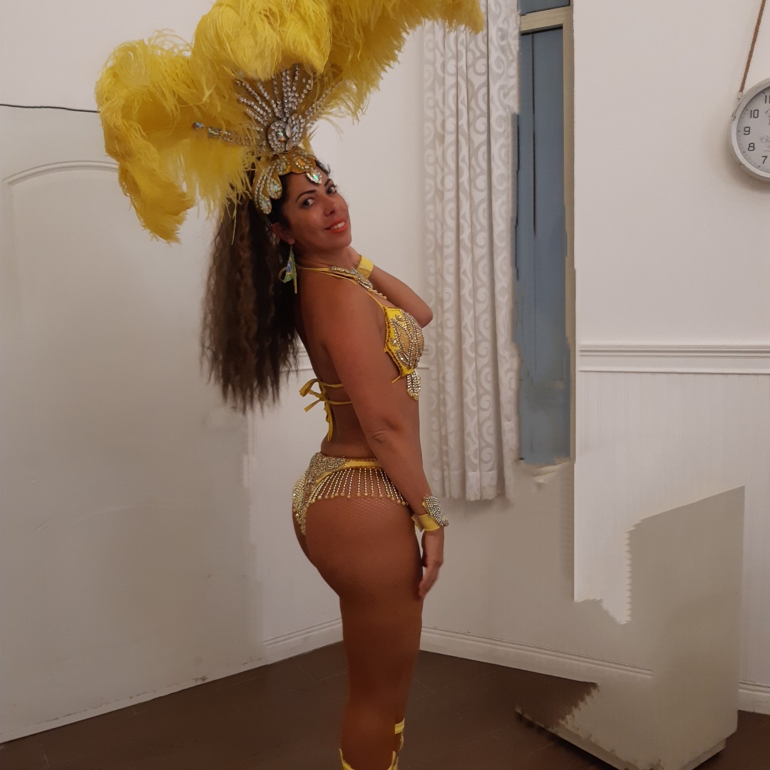 תלבושת סמבה עבודת יד כחדשה ! צהוב לימון וזהב הכוללת חזיה נקשרת, חוטיני מותאם למידה M/L קאבסת נוצות נוצצת בשיבוץ קריסטלים , קישוטי ידיים ורגליים ב 1700 שח . ניתן לרכוש את הבגד בלבד ללא הקאבסה ב 800 שח בלבד. מי שרוצה קוסטרו (בגב עם נוצות תוספת של 300 שח בלבד )