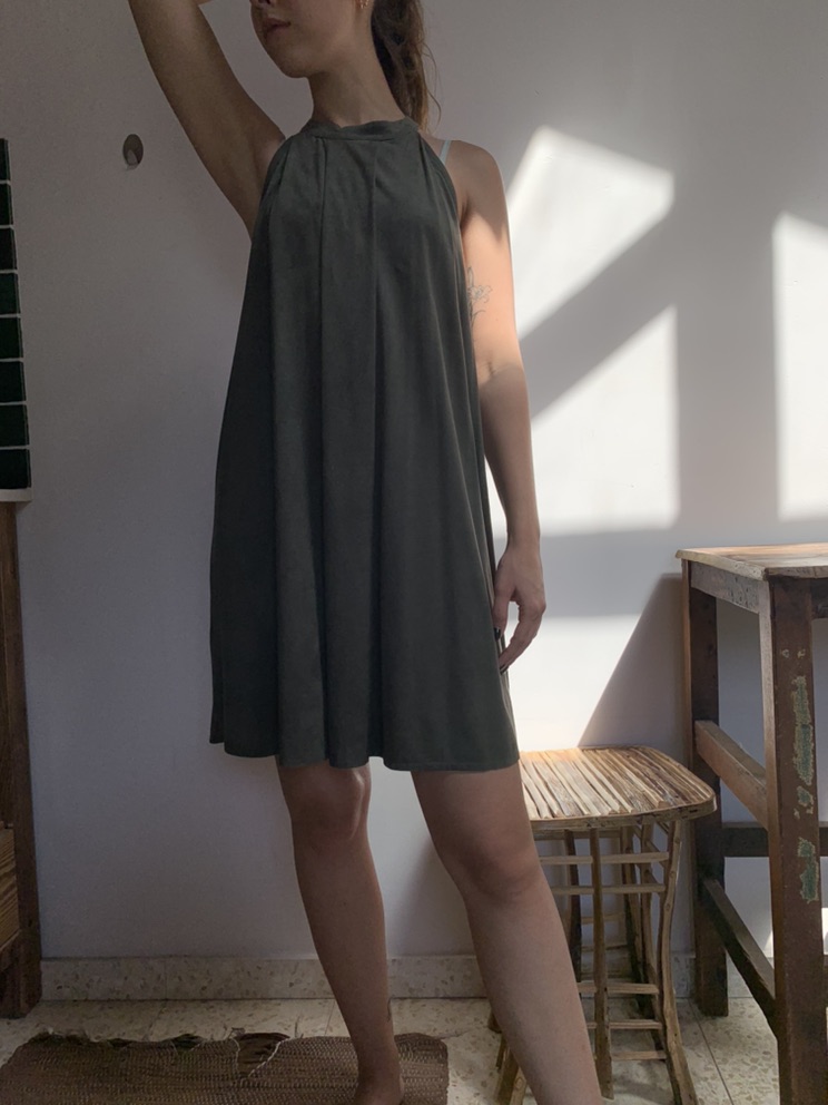 שמלת קטיפה בצבע ירוק זית
