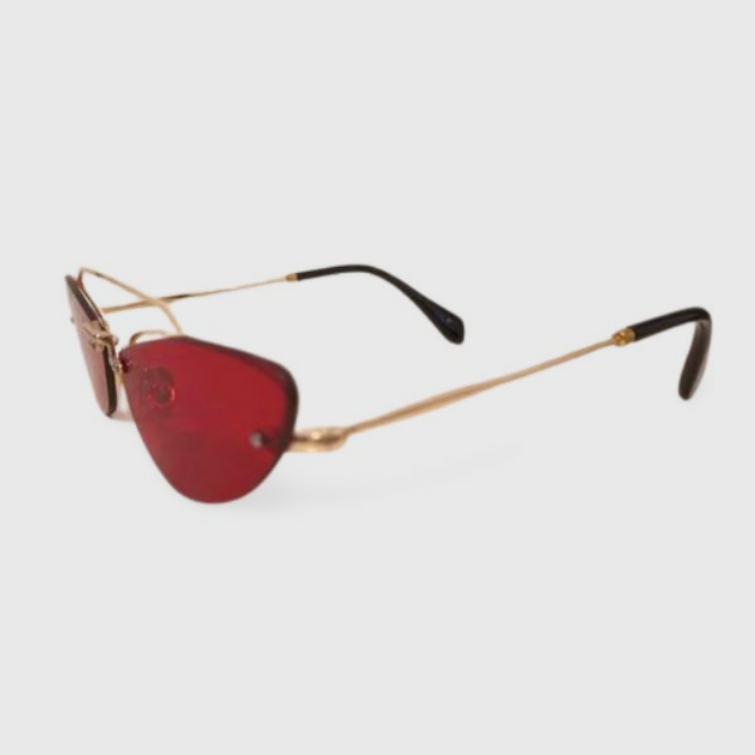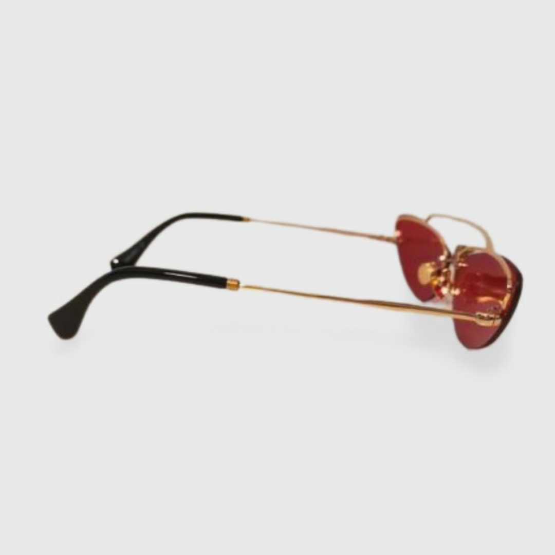 משקפי שמש עם עדשות בצבע אדום ומסגרת מטאלית בצבע זהב , הגנה 400UV.