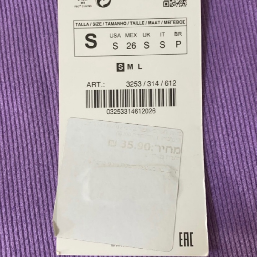 גופיית ספגטי חדשה של זארה במידה s לא נלבשה מעולם . מוכרת כי קטנה עלי