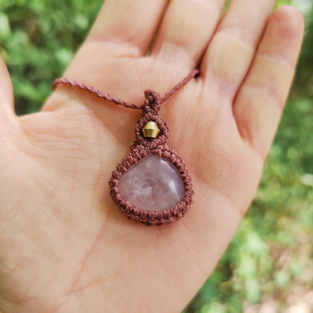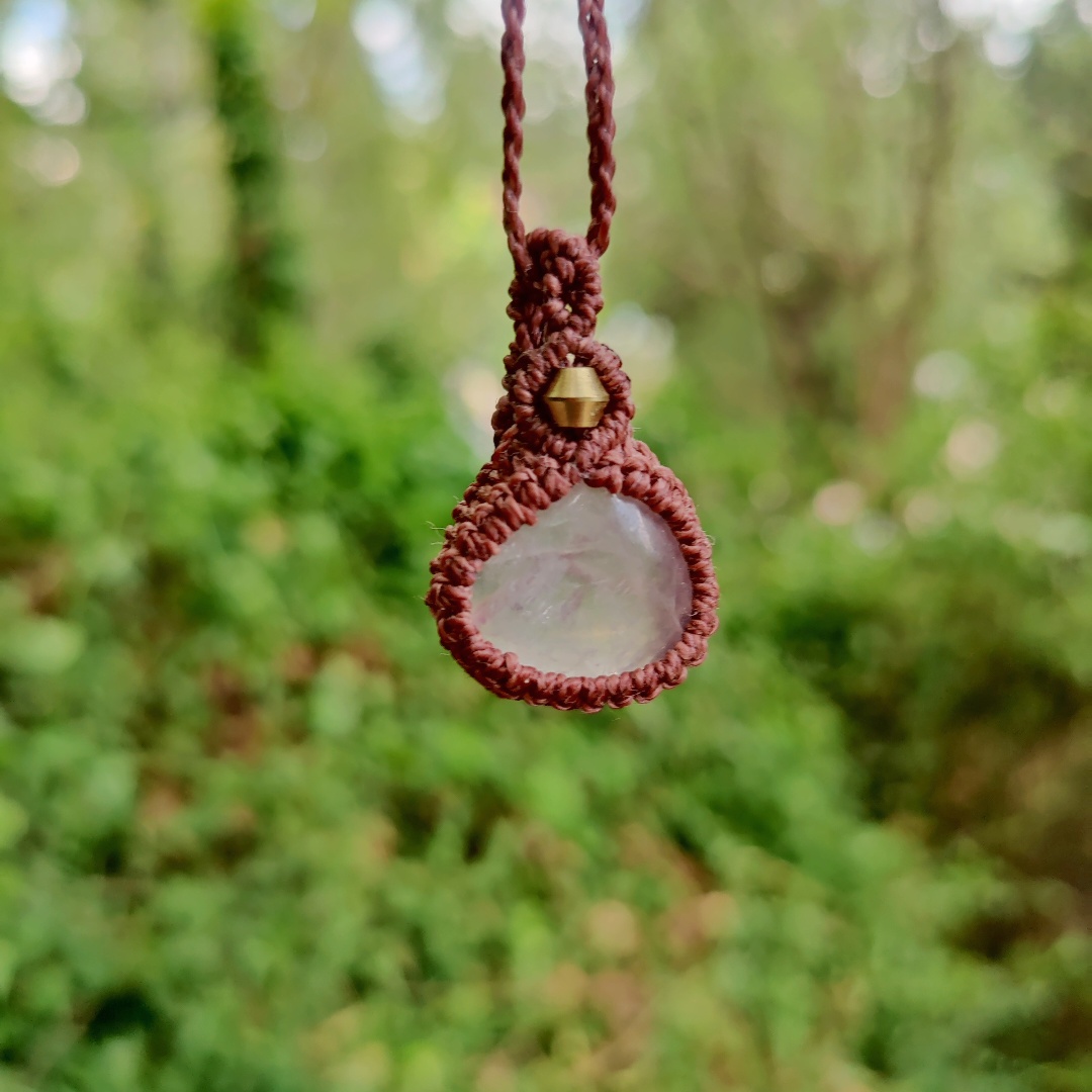 שרשרת מקרמה עם אבן קוורץ חלבי