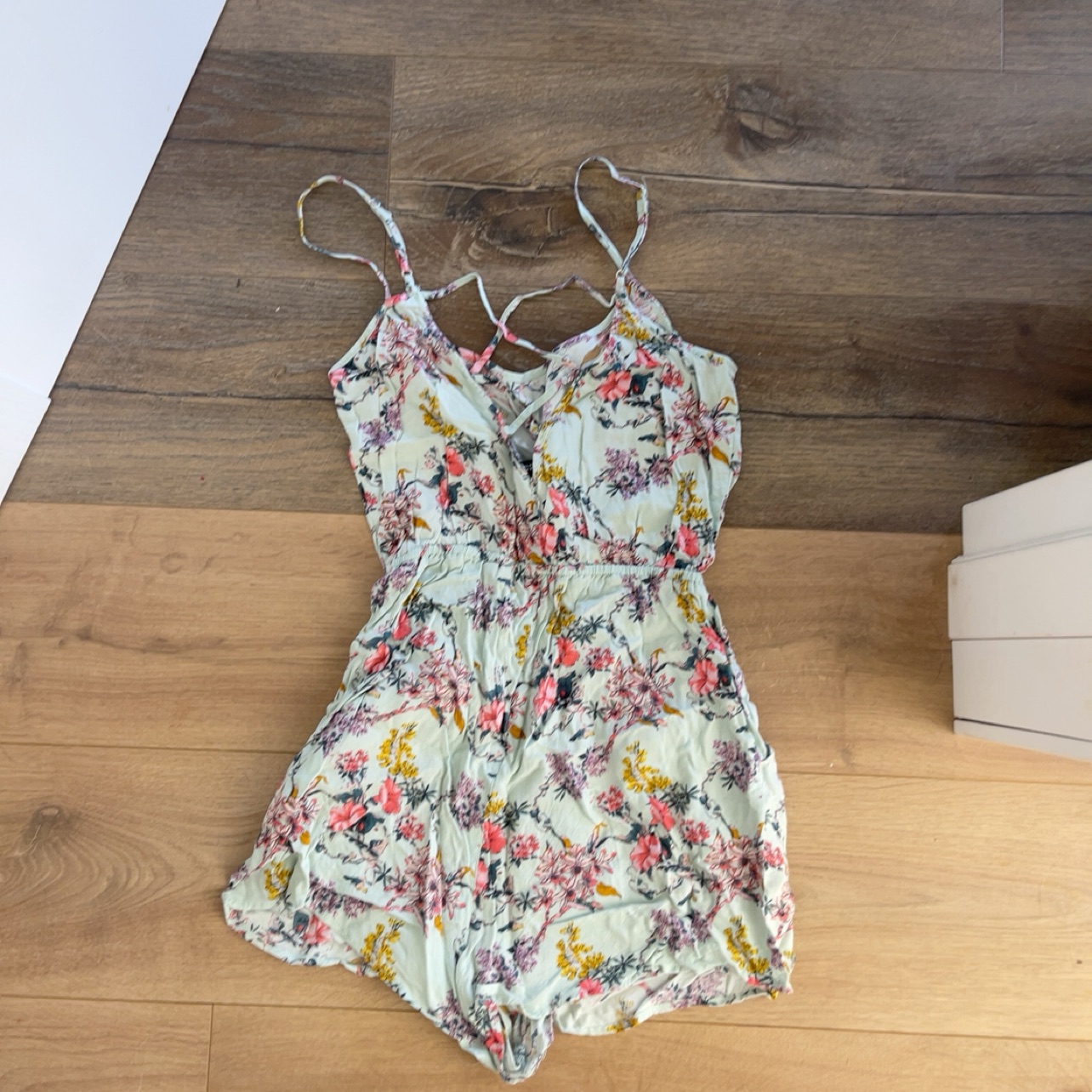 אוברול קיצי פרחוני עם פסים על הגב