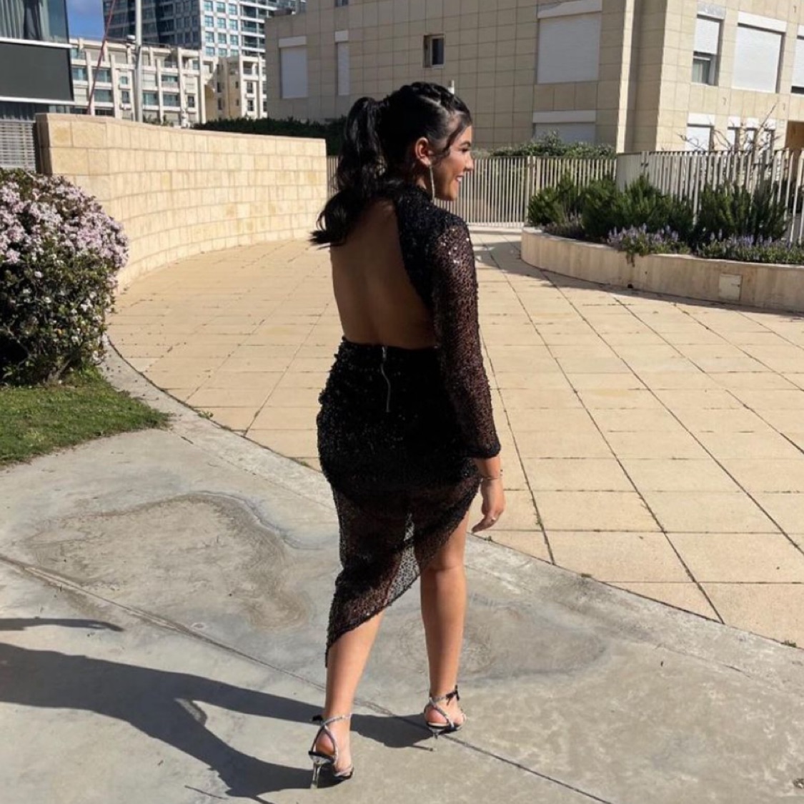 שמלת ערב שחורה, עם גב פתוח. מידה M, נלבשה פעם אחת. איסוף מראשל״צ, באר יעקב והסביבה.