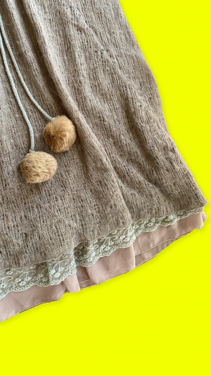 שמלת קוטג׳ קור (cottage core) מטורפת עם כמה שכבות ופונפונים סופר חמודים כל מי שרוצה להיות פיה צריכה שמלה כזאת בארון