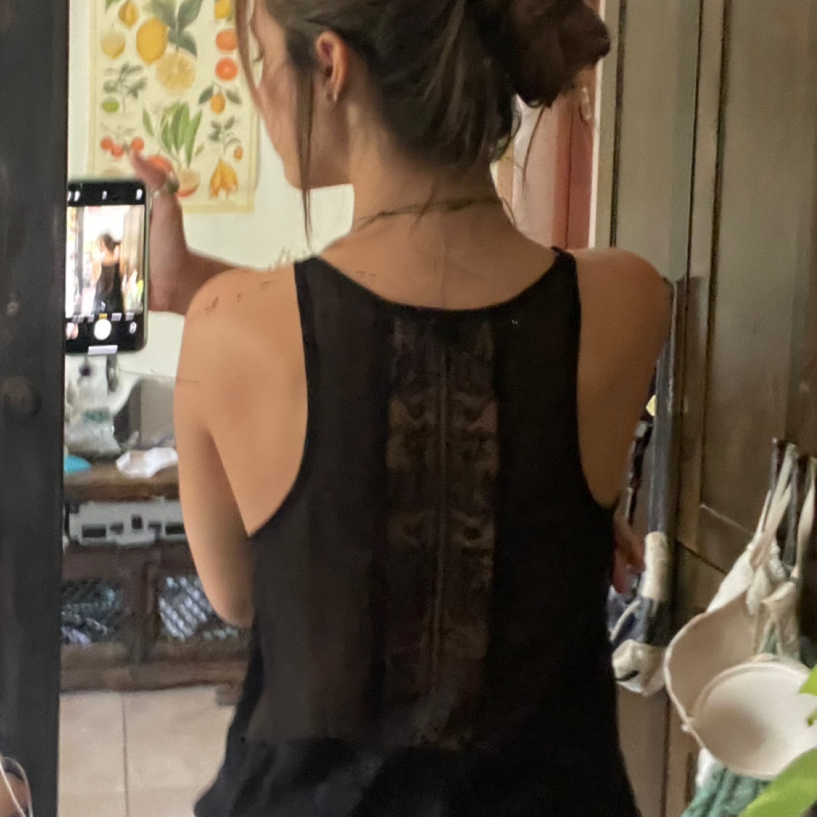 גופיה שחורה שקפקפה, עם תחרה מאחורה