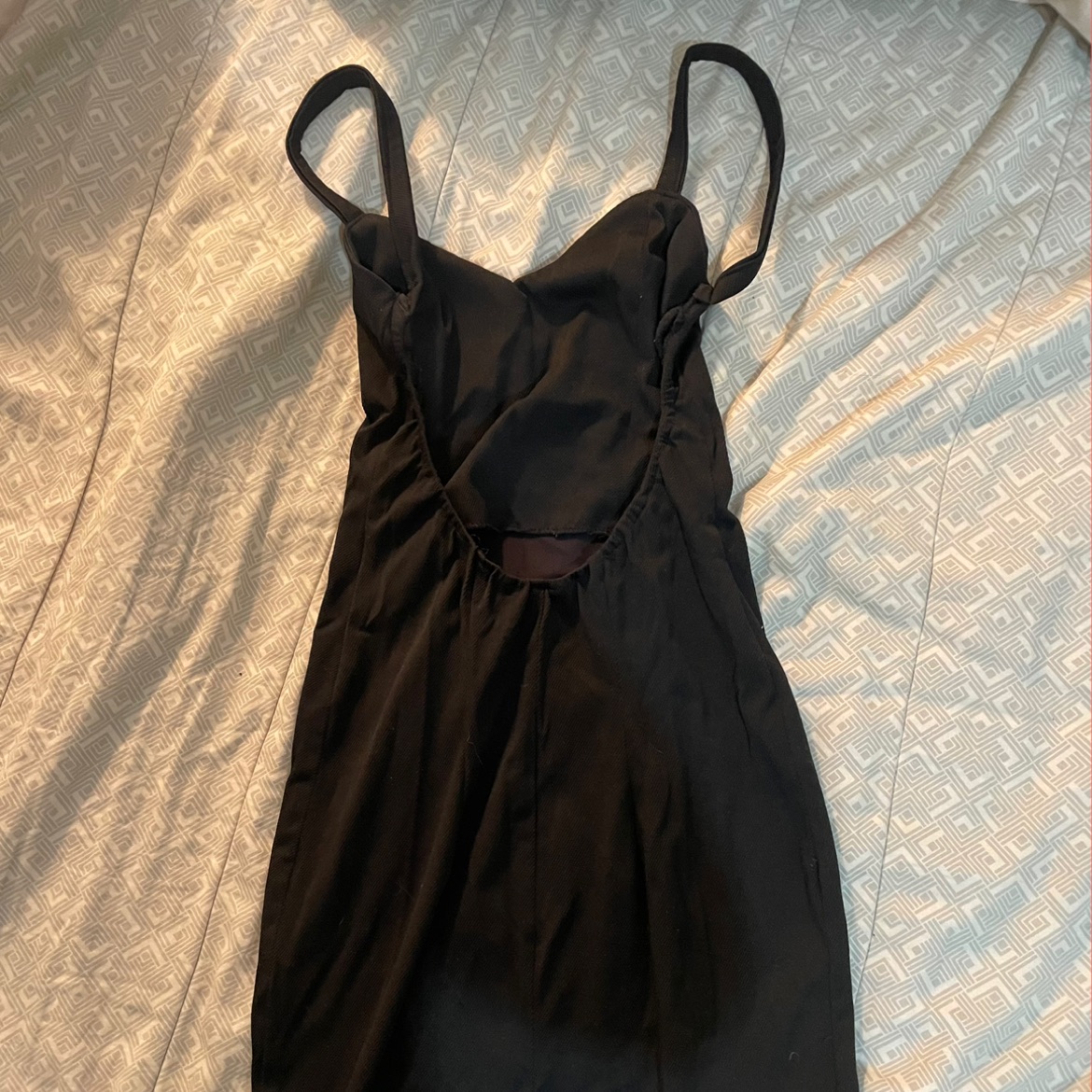 שמלת מיני שחורה עם גב פתוח, מבד איכותי. יושבת מושלם בחזה, והגב מושך את העין בפני עצמו. מרשימה מאוד. מידה XS
