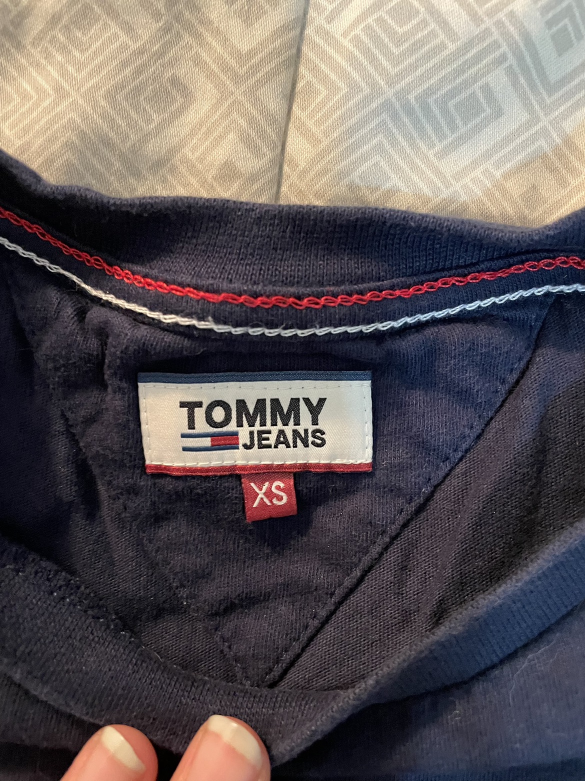 חולצת טי שירט של טומי ג׳ינס. צבע כחול כהה. מידה XS