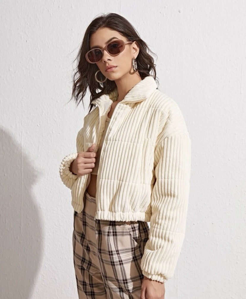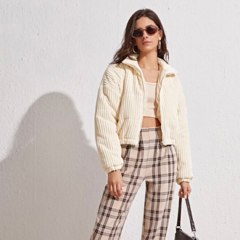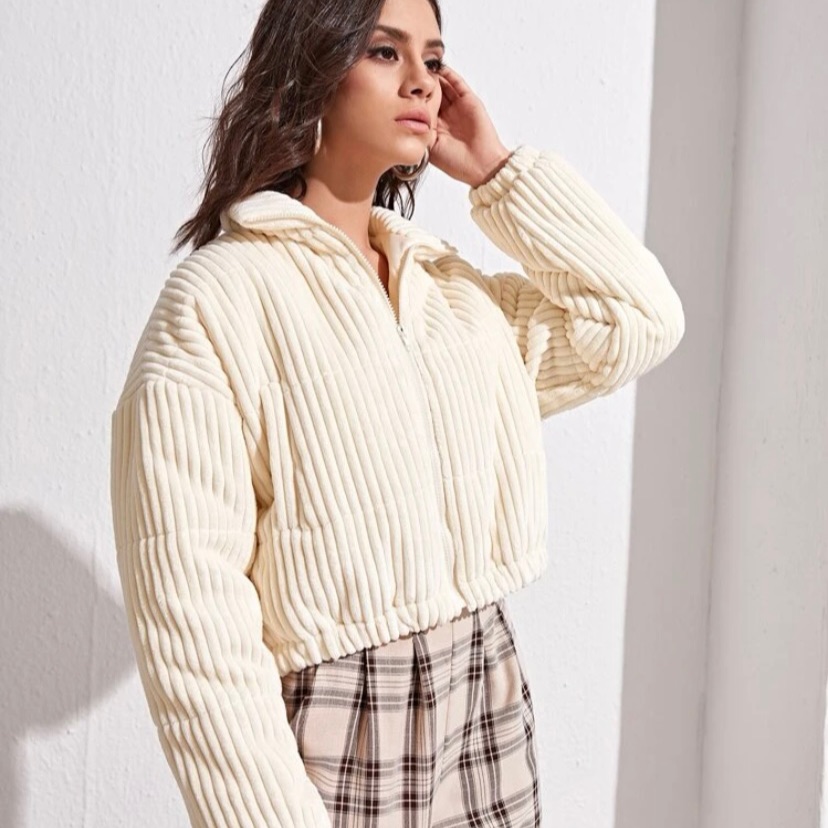 ז׳קט קרופ בז׳ נפוח חדש וטרנדי
