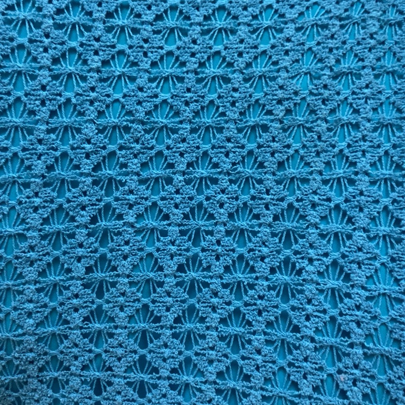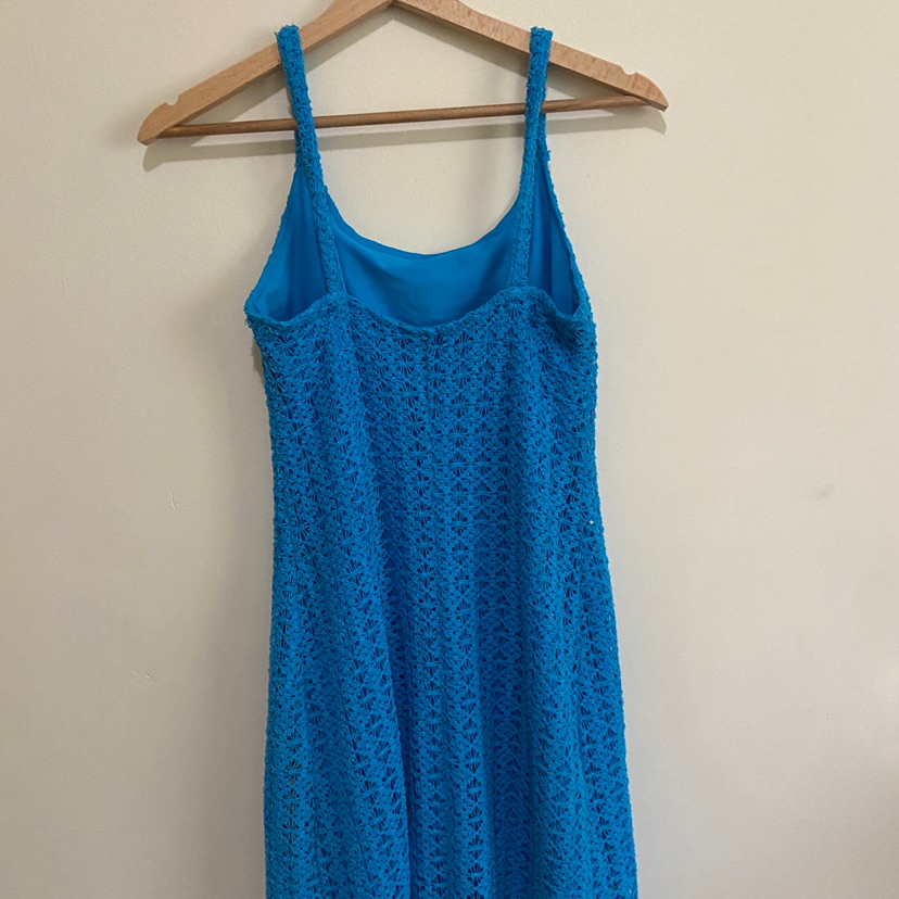 שמלת קיץ קצרה, כיפית וייחודית. מתאימה לנשים ולנערות. מראה סרוג. בעלת שתי שכבות. בצבע תכלת חזק. מידה xs.