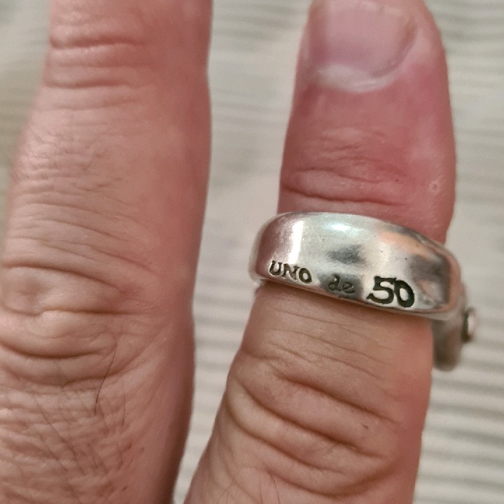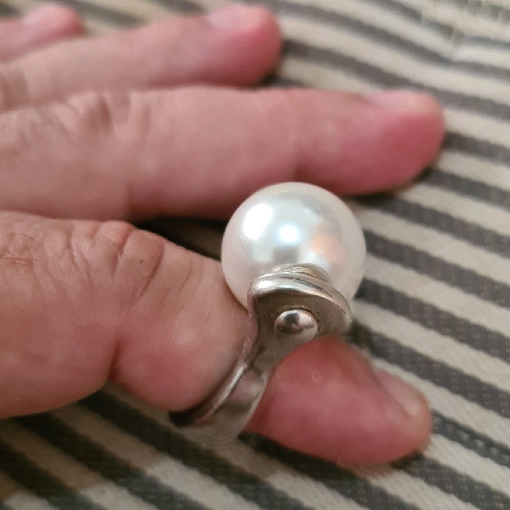 טבעת מכסף אמיתי עם פנינה ענקית אמיתית של החברה הספרדית Uno De 50 עולה באתר 650 שח .