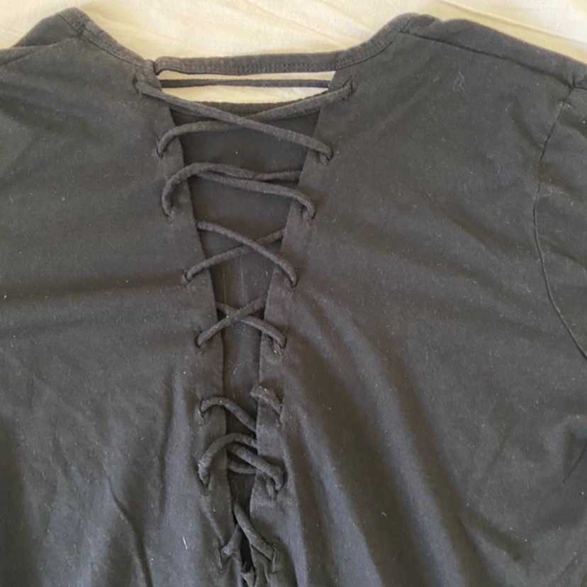 טי שרט שחורה עם הדפס וגב פתוח מידה S-M