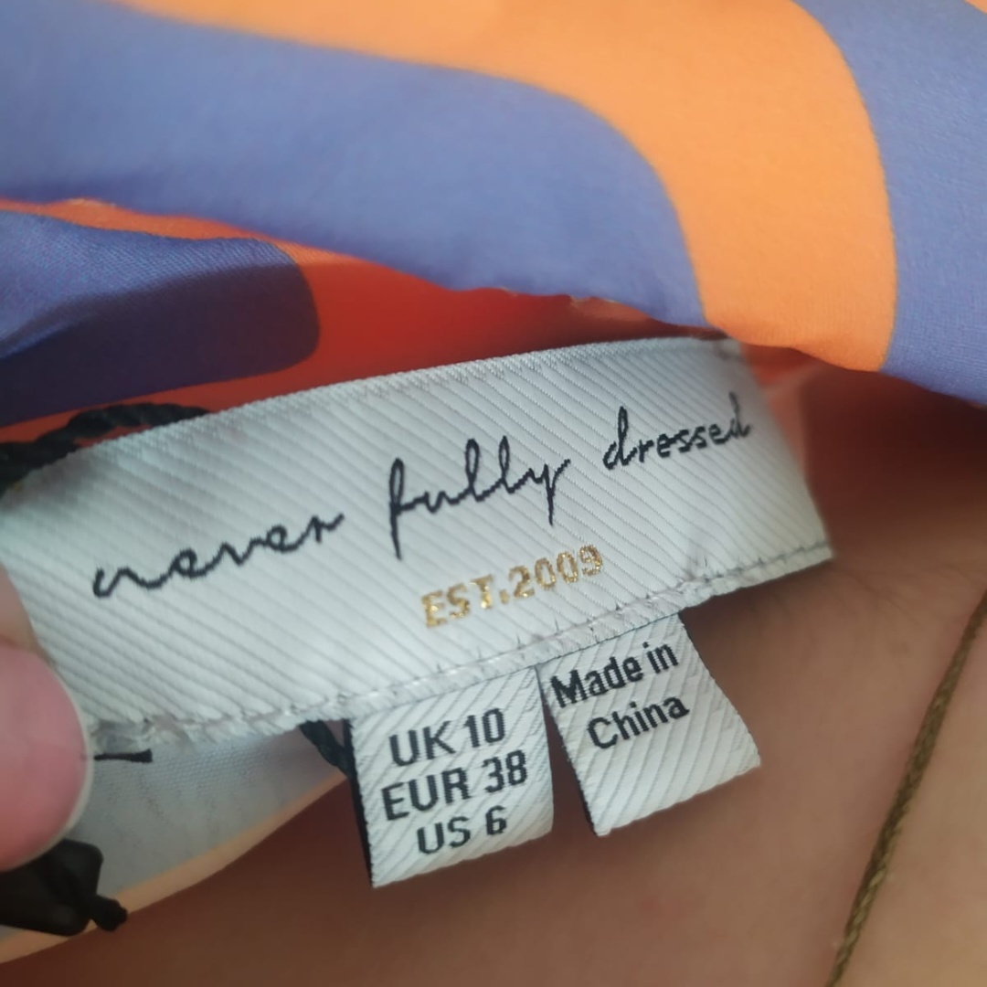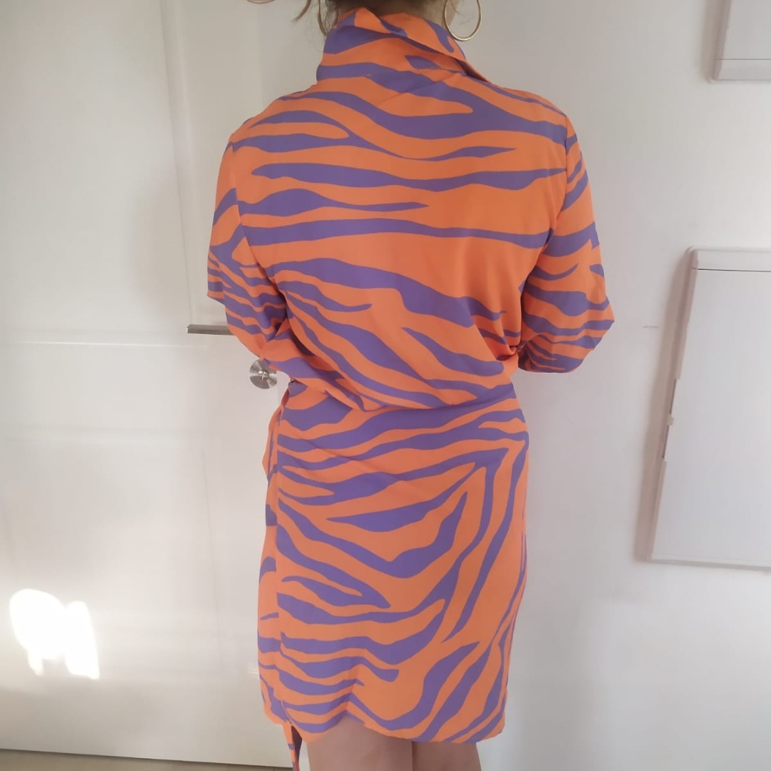 שמלה מנומרת בצבעים סגול כתום שלא נלבשה בכלל מידה 38