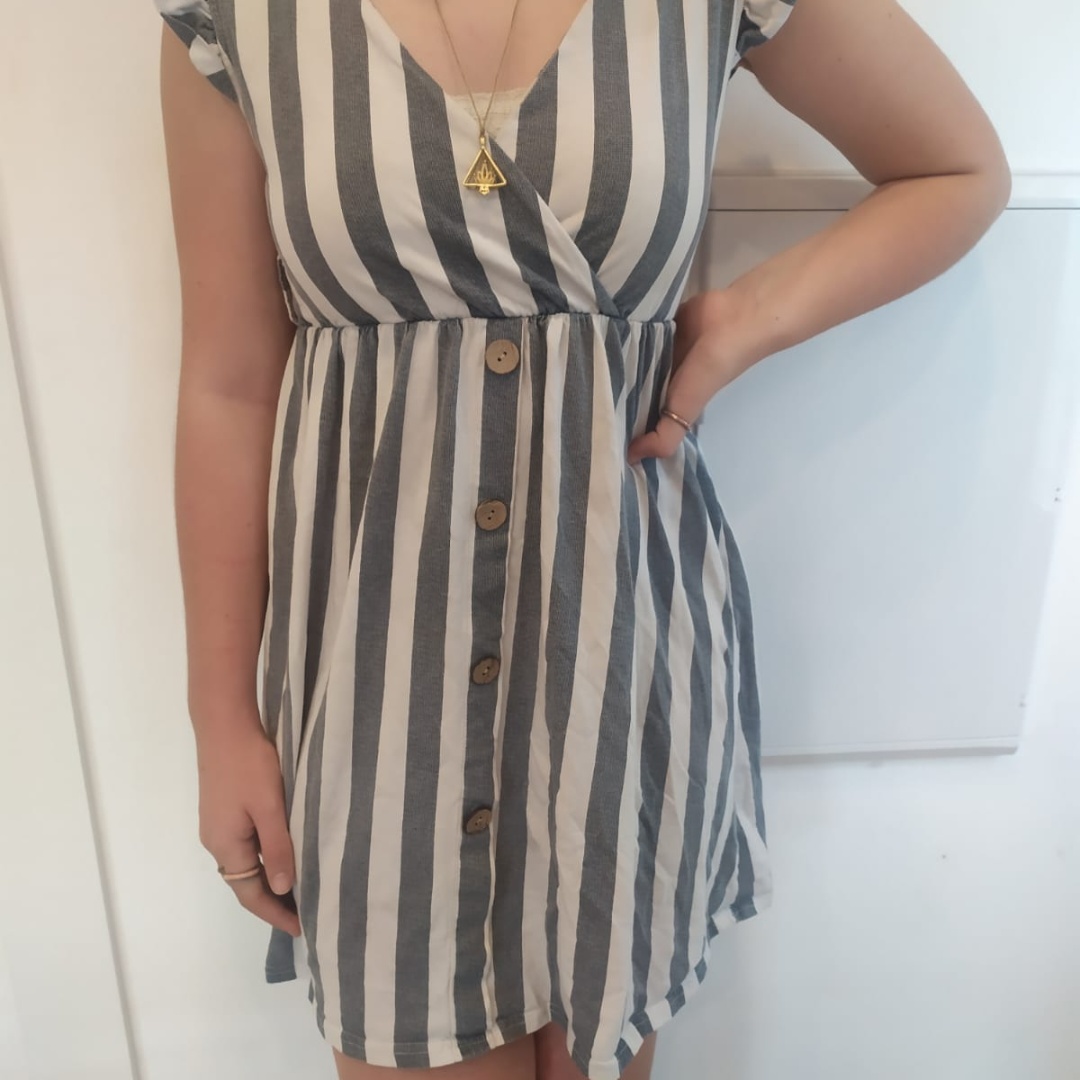 שמלה מהממת בדוגמת פסים אפור לבן עם כפתורים מידה XS
