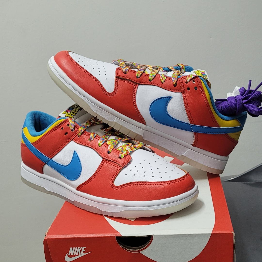 זוג נעלי נייקי דאנק בדגם שיצא עבור לברון ג'יימס ודגני הבוקר Fruity Pebbles, חדש לגמרי ומגיע עם הקופסא המקורית. מידה 42EU-8.5US-26.5CM