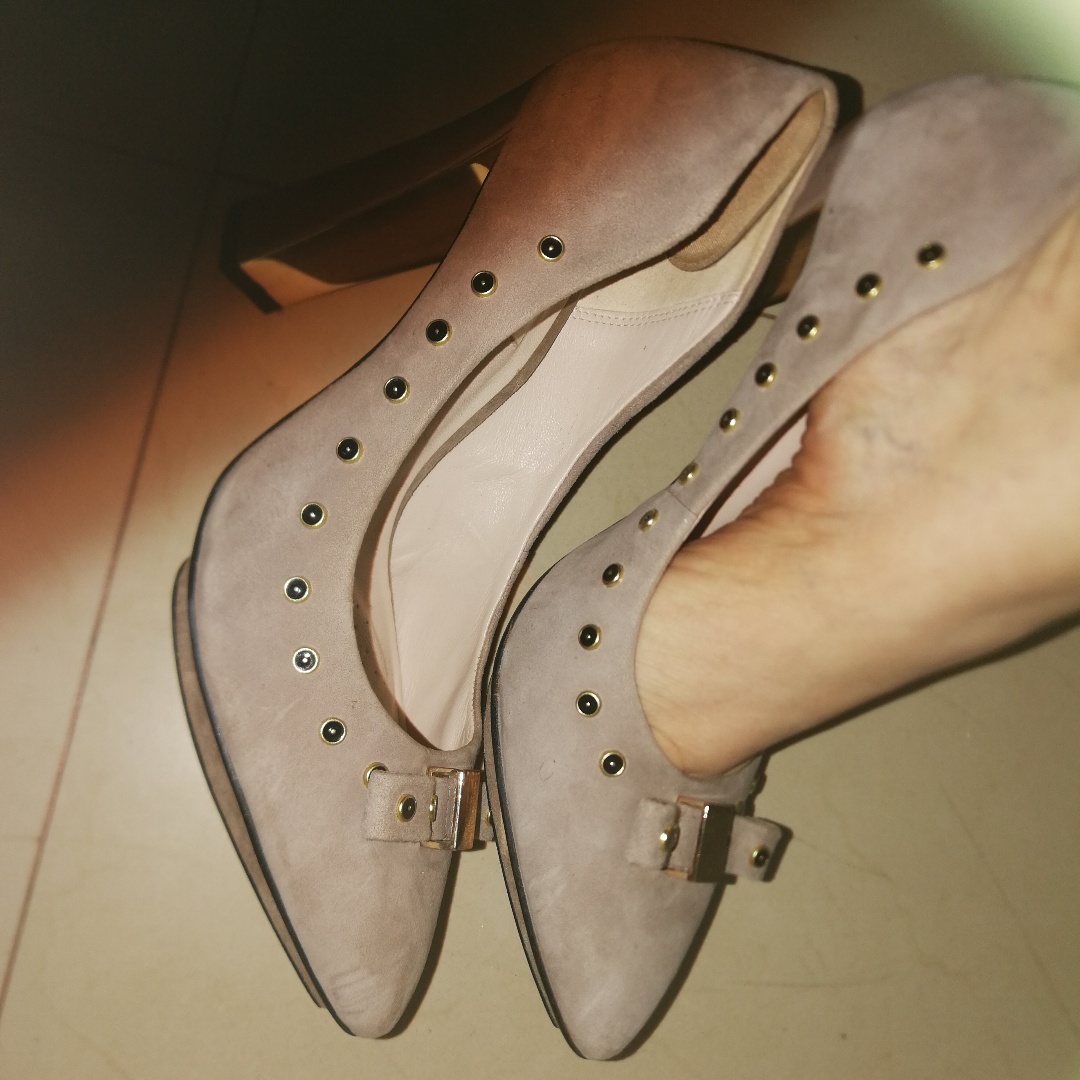 נעלי קליגולה יפיפיות בצבע ניוד עם עקב גבוה נלבשו פעם אחת