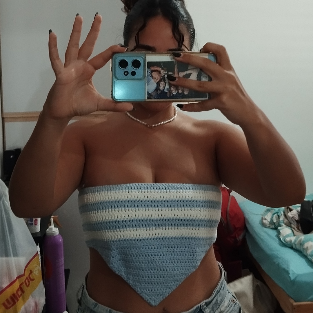 חולצת סטרפלס סרוגה בעבודת יד בסגנון מחוך
