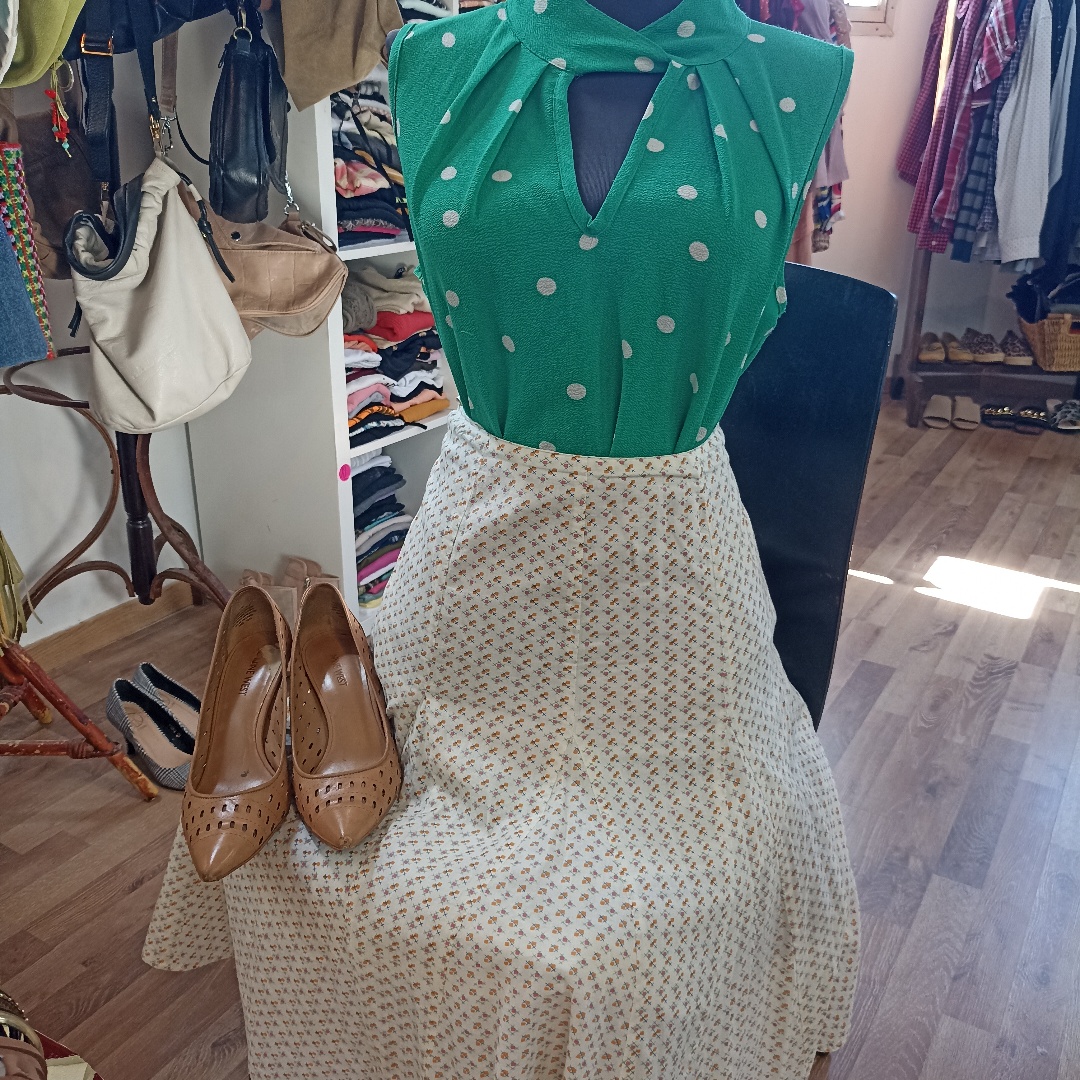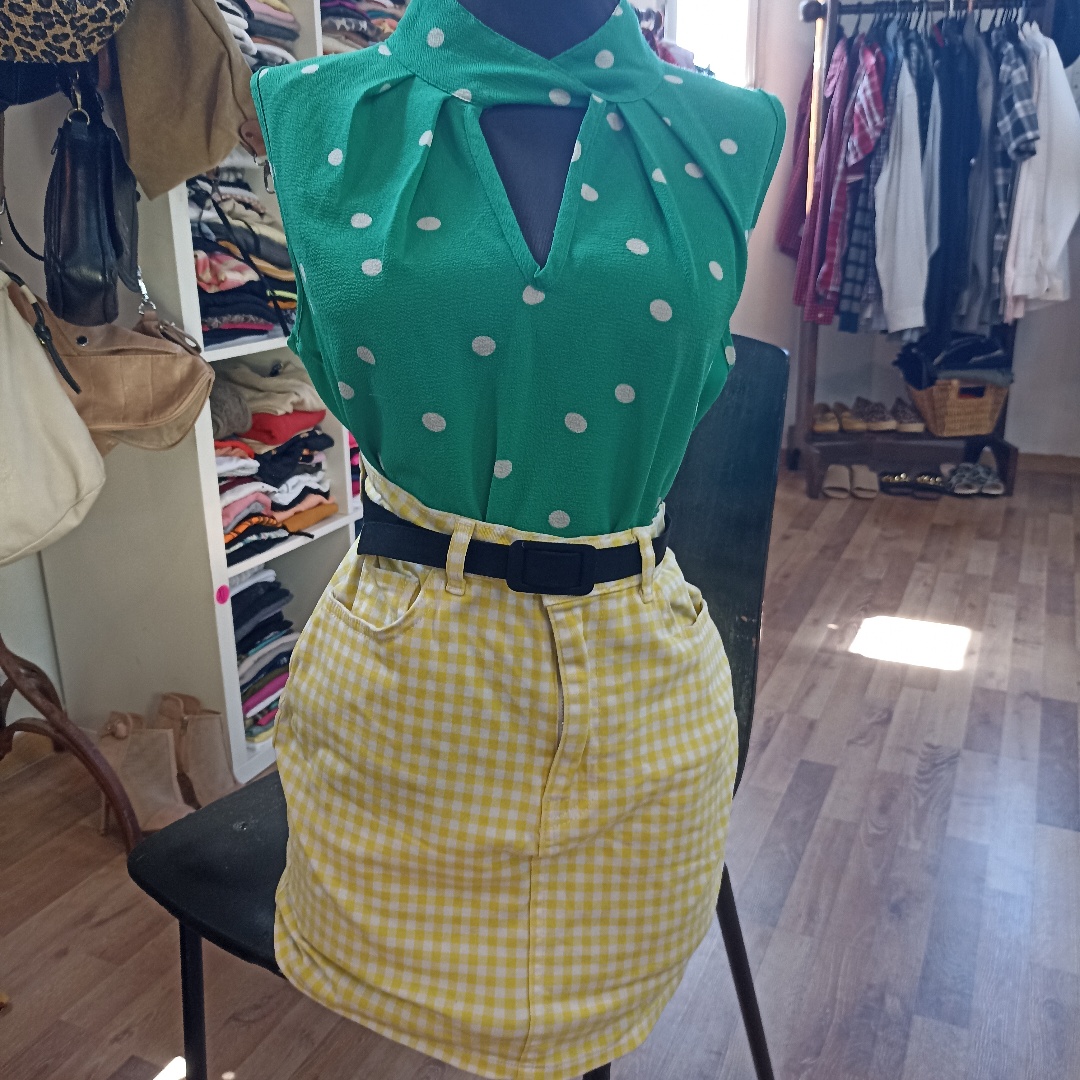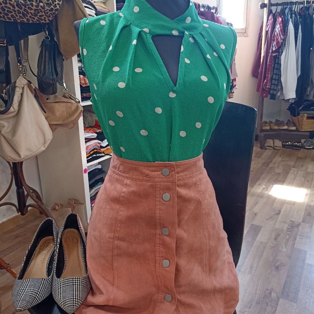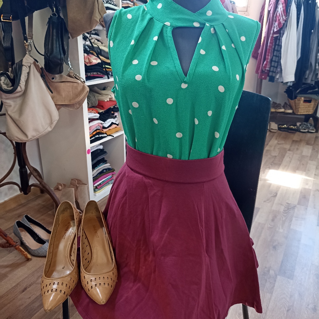 40 ₪חולצה ירוקה, מידה M , חצאית אדומה מידה xs 35₪