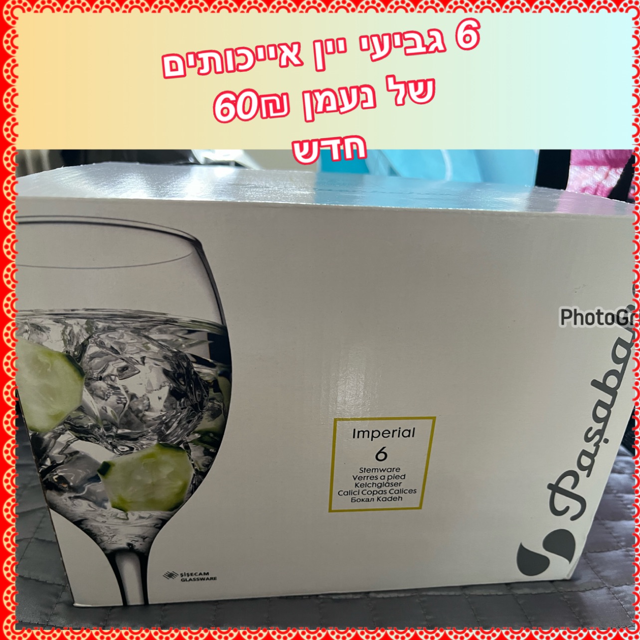 שלושה אריזות של גביעיי יין מחיר על גבי התמונה